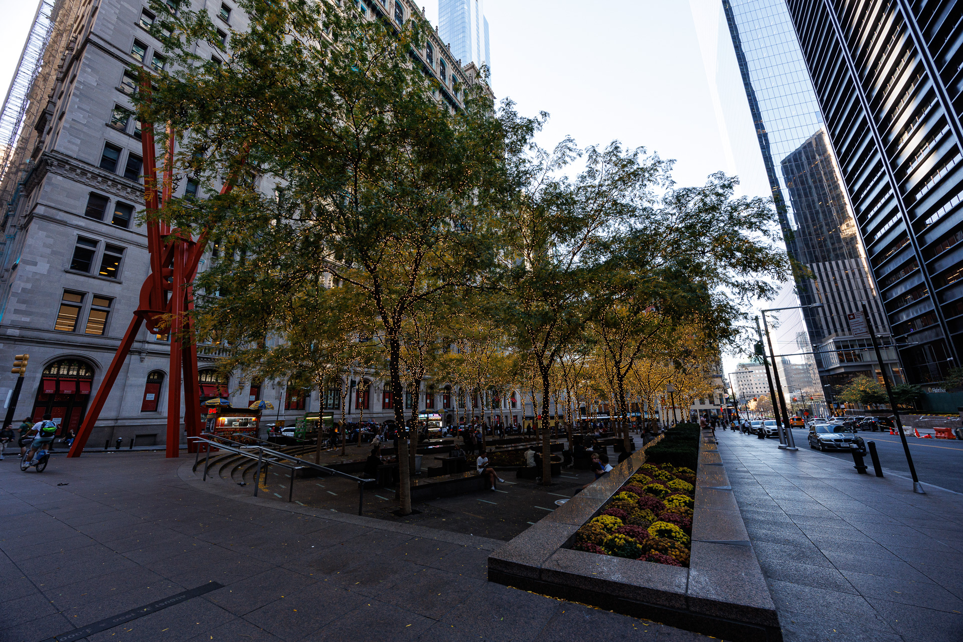 Nous nous dirigeons ensuite vers Wall Street et son fameux taureau. New-York comporte de nombreux endroits de détente bien décoré tel que celui-ci que nous traversons rapidement.
