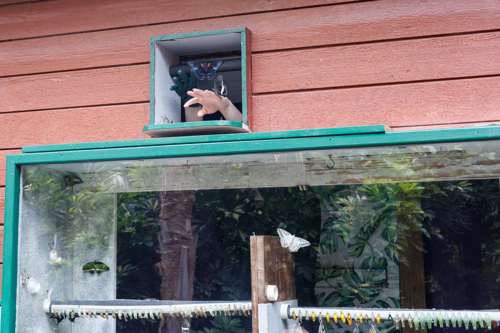 Le moment est venu de s’envoler. Une main bienfaitrice aide à l’envol du jeune papillon par la fenêtre de sortie de la nurserie 😊