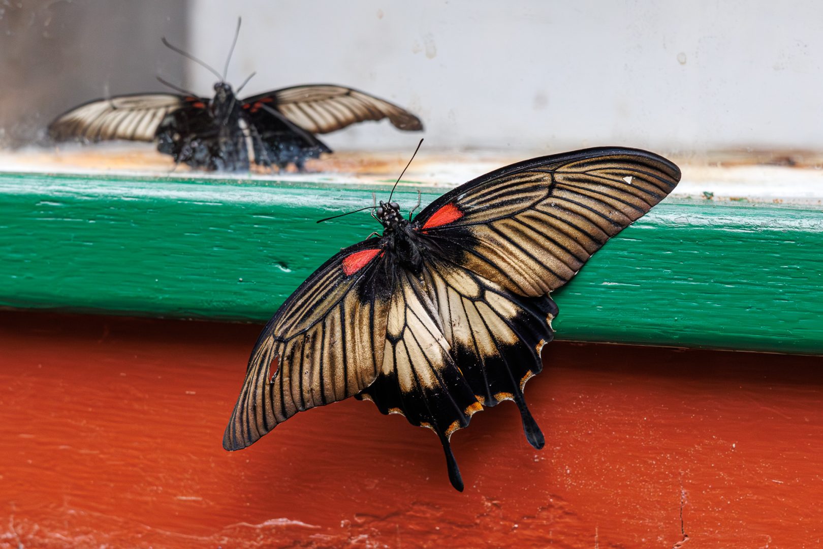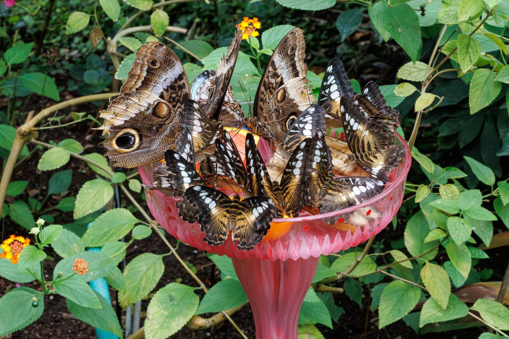 Les papillons présents au sanctuaire viennent d’Amérique du Sud et d’Asie, notamment du Costa Rica et des Philippines, où un réseau d’agriculteurs entretient des jardins qui attirent différentes espèces de papillons.