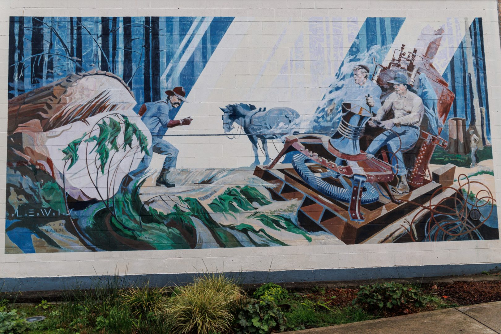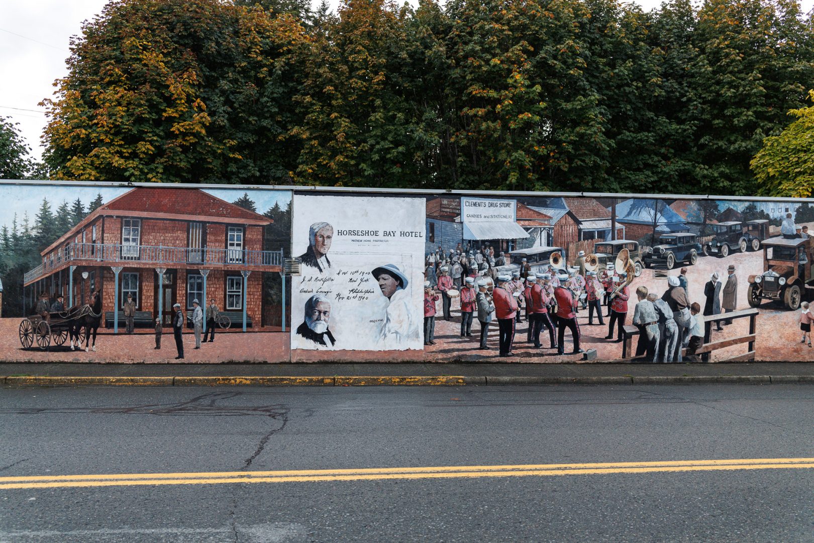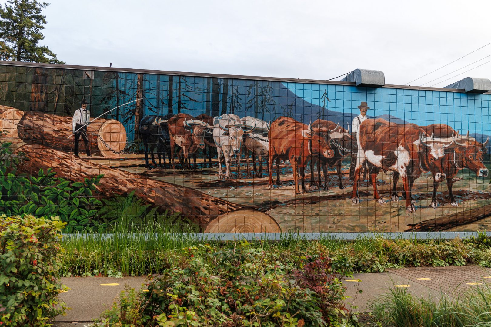 Après cette visite bien dépaysante, nous partons en direction de Chemainus. La ville est connue pour ces fresques murales. En voici l’histoire :