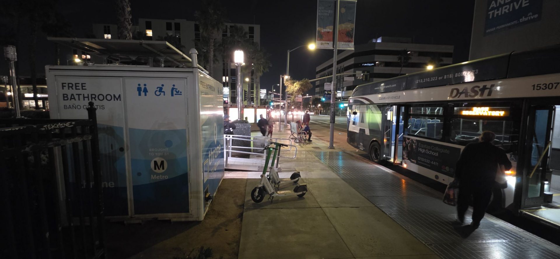 En rejoignant la station de métro, nous passons à côté d’une salle de bain publique qui en plus est gratuite. Installation sociale bien utile pour les nombreux SDF qui vivent à Los Angeles 😕.