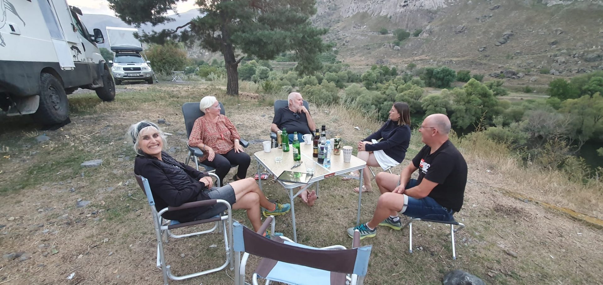 Notre bivouac à Vardzia sera l’occasion de passer la soirée avec deux autres couples français : des lorrains habitant au Luxembourg, membres comme nous de CCRSM http://www.camping-car-monde.fr/, voyageant en camion Iveco 4×4, et des bretons en véhicule de location avec tente de toit, lui ayant passé une année professionnelle en Géorgie il y a 15 ans. Un bon et long moment d’échanges, malgré une invasion de fourmis volantes qui heureusement ne piquent pas 😉