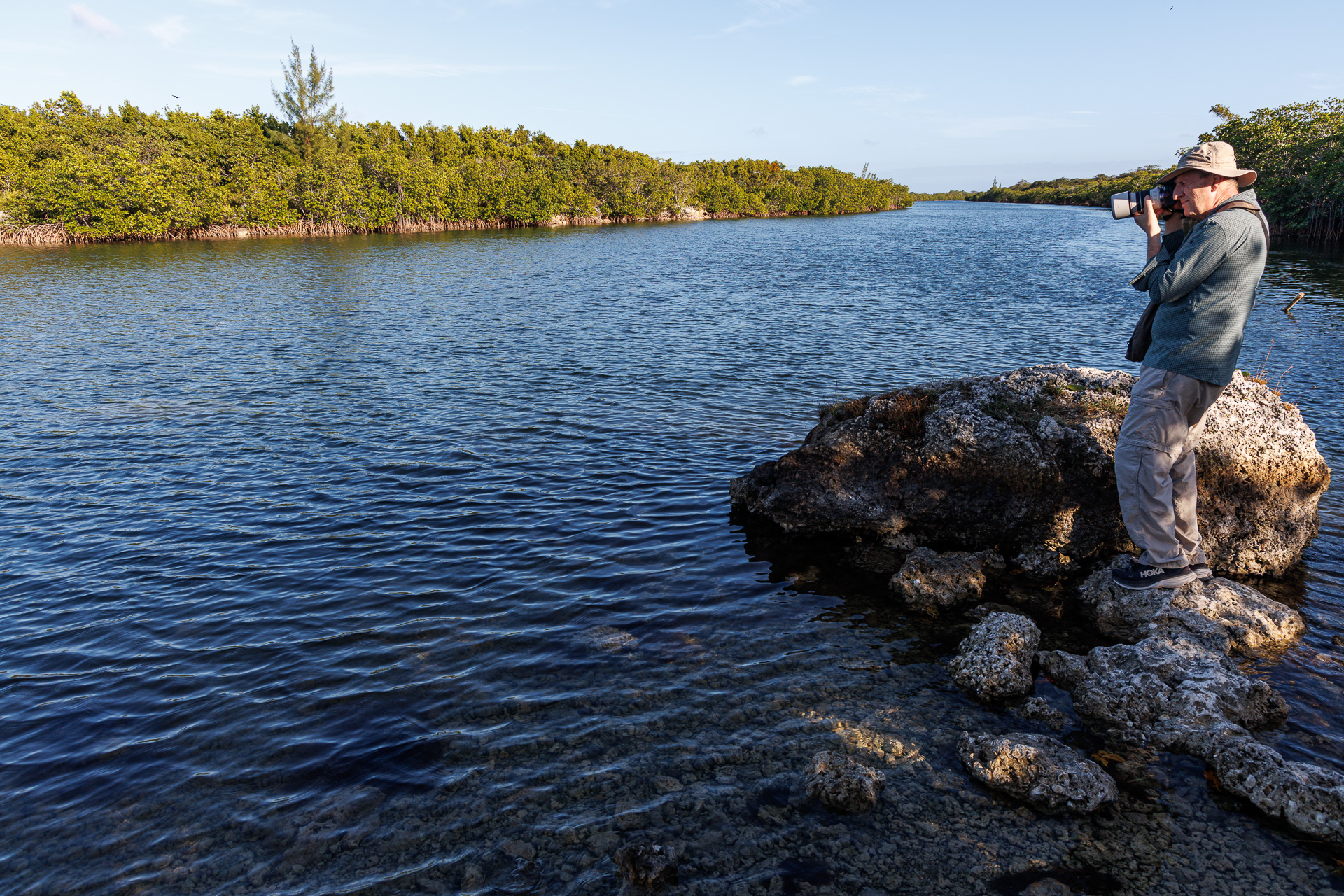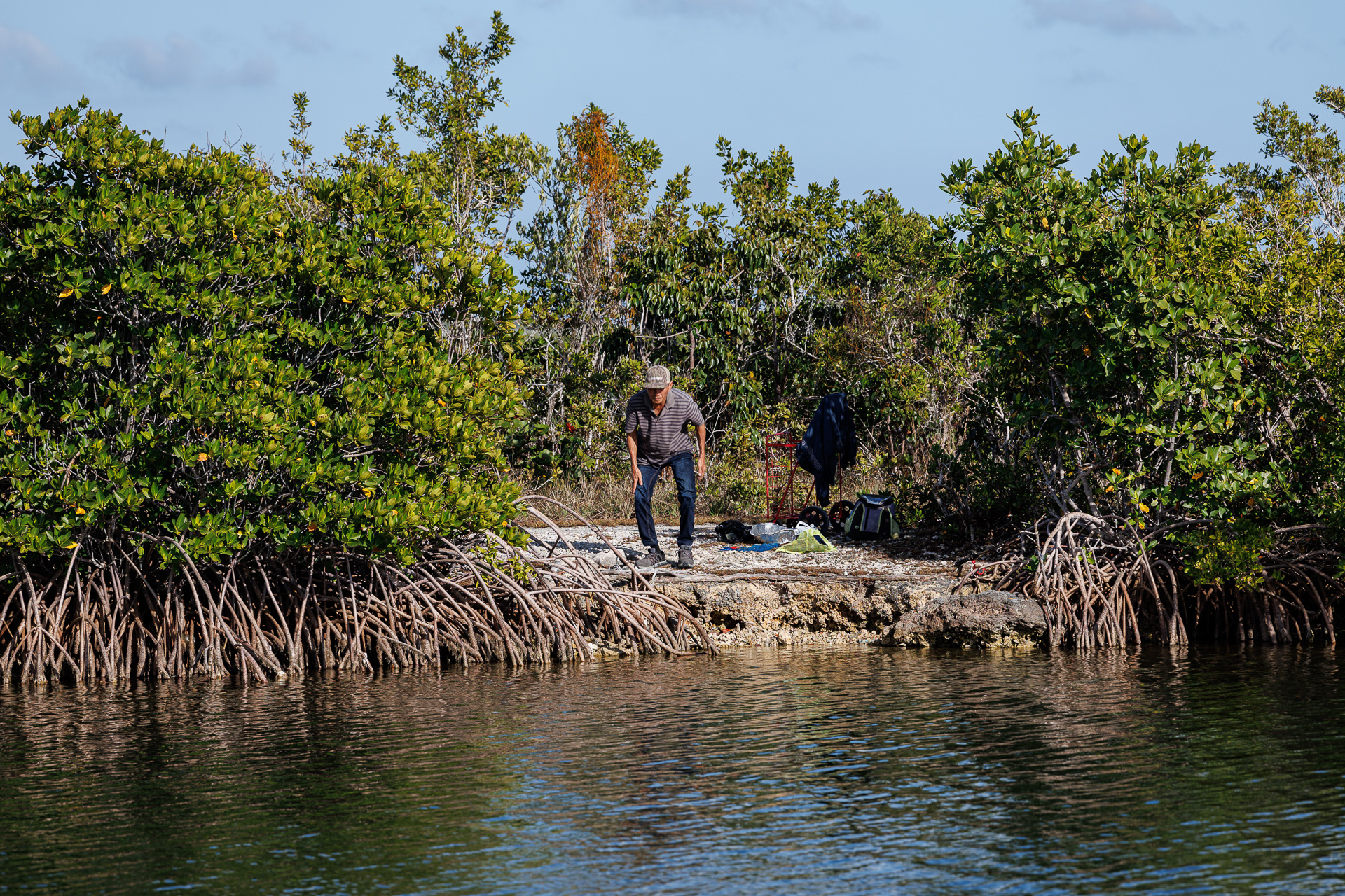 Des pêcheurs se positionnent dans les trous de la végétation pour exercer leur art.
