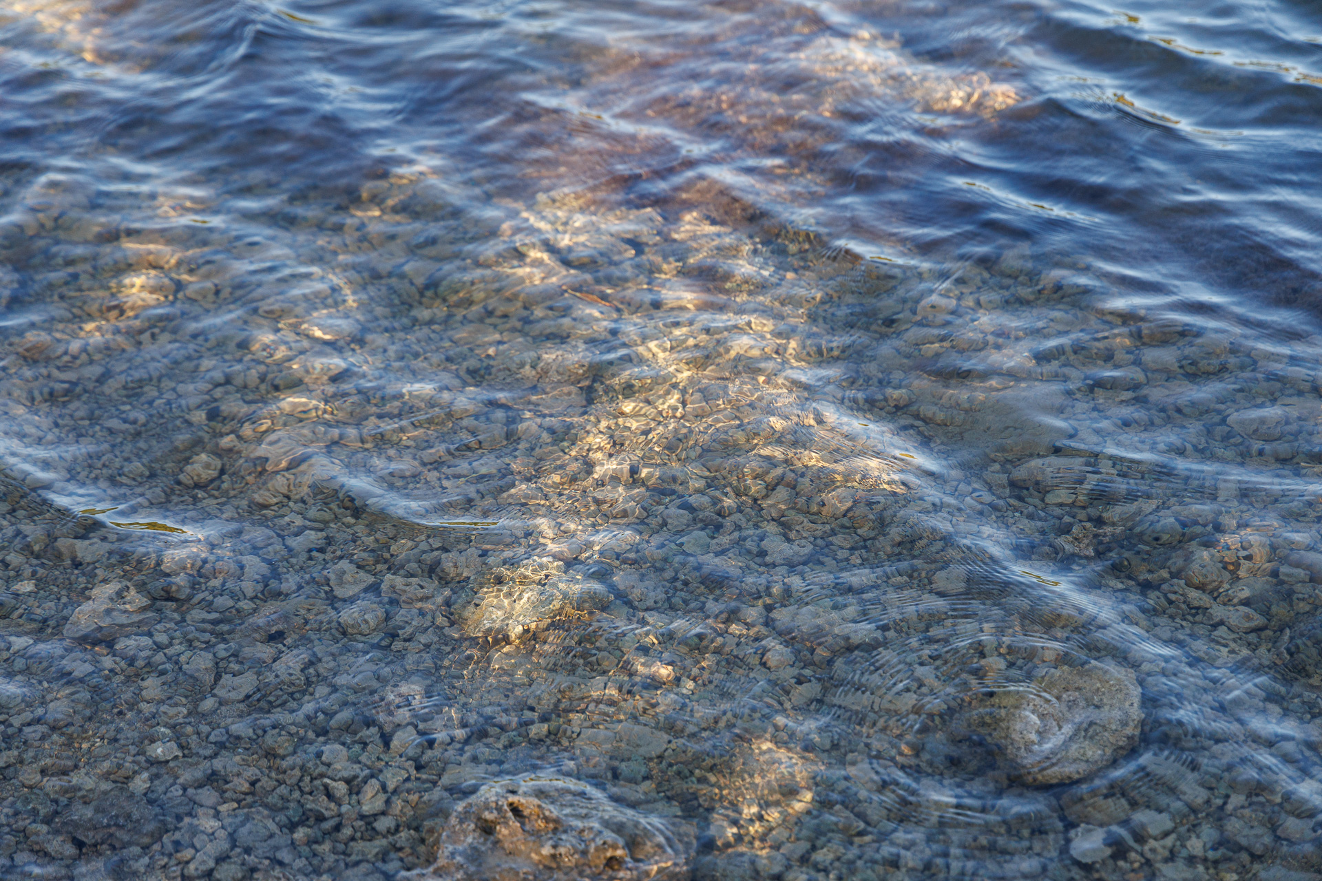 L’eau est d’une belle transparence. Le soleil arrive même à éclairer les cailloux !