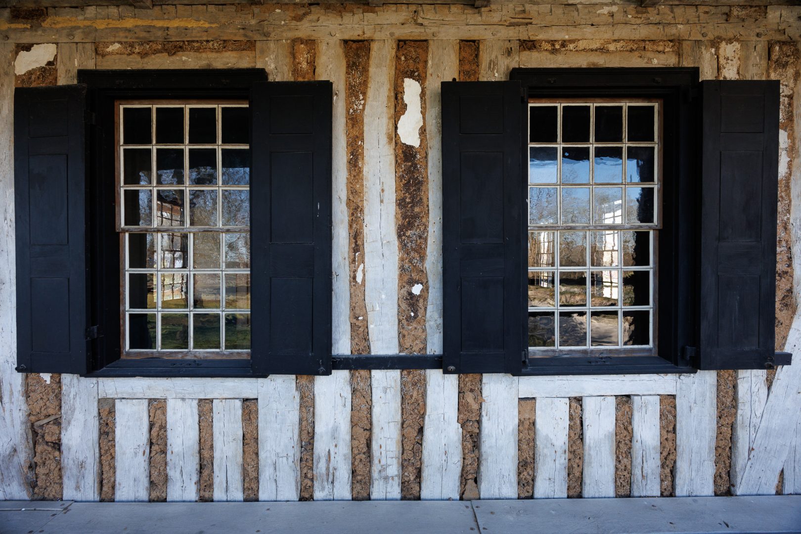 Les bâtiments de style «colonial français» étaient construits à partir de rondins massifs, équarris et posés verticalement pour former les murs de la maison. De lourdes poutres étaient mortaisées et chevillées pour former de robustes fermes qui soutenaient l’impressionnant toit en croupe qui couvrait la maison et ses larges porches.