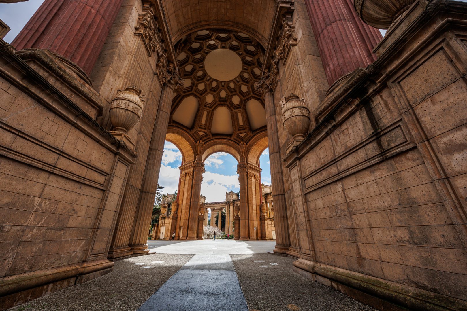 Le bâtiment dessiné par l’architecte Bernard Maybeck (1862-1957) s’inspire de l’architecture classique grecque et romaine. Il a été décoré avec des frises sculptées et des figures allégoriques représentant la contemplation, l’émerveillement et la méditation, frises créées par Ulric Ellerhusen (1879-1967). Il n’a de palais que le nom. C’est plutôt une rotonde entièrement ouverte sur l’extérieur,