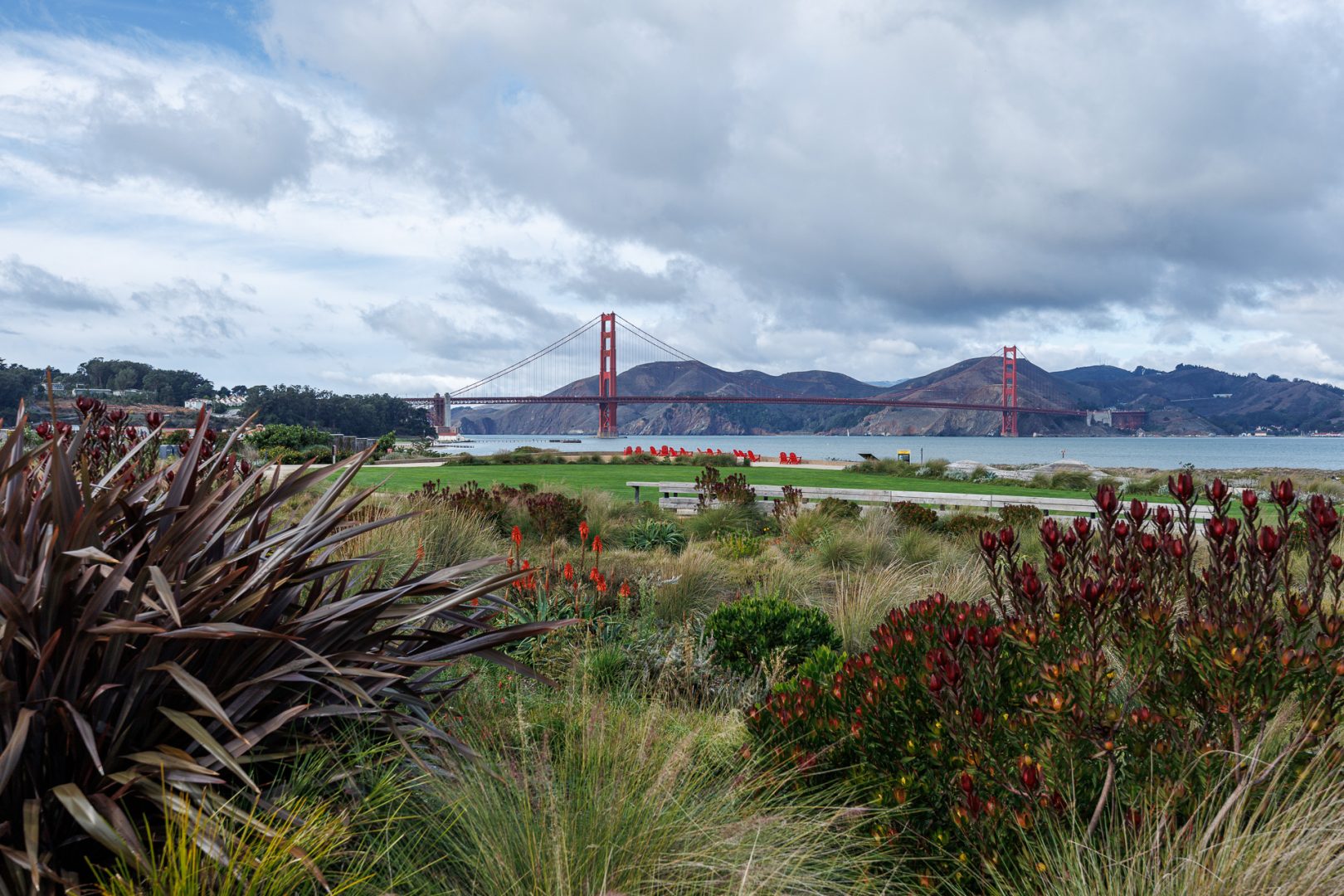 Nous quittons le Palace of Fine Arts et nous nous dirigeons à pied vers un autre quartier historique de San Francisco : le Presidio. Nous empruntons la Golden Gate Promenade d’où nous avons une très belle vue sur le Golden Gate Bridge.