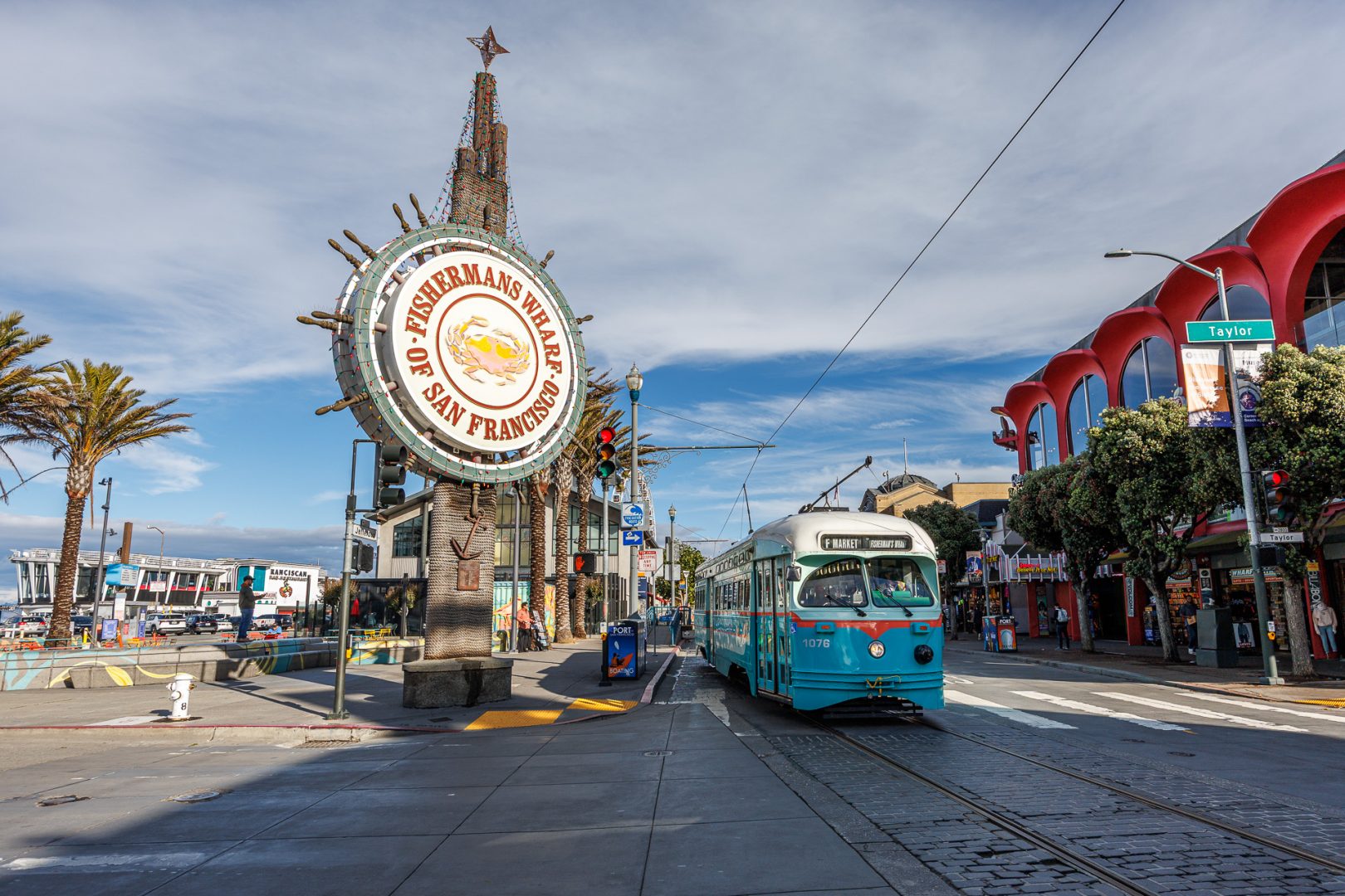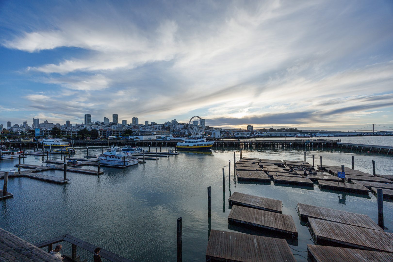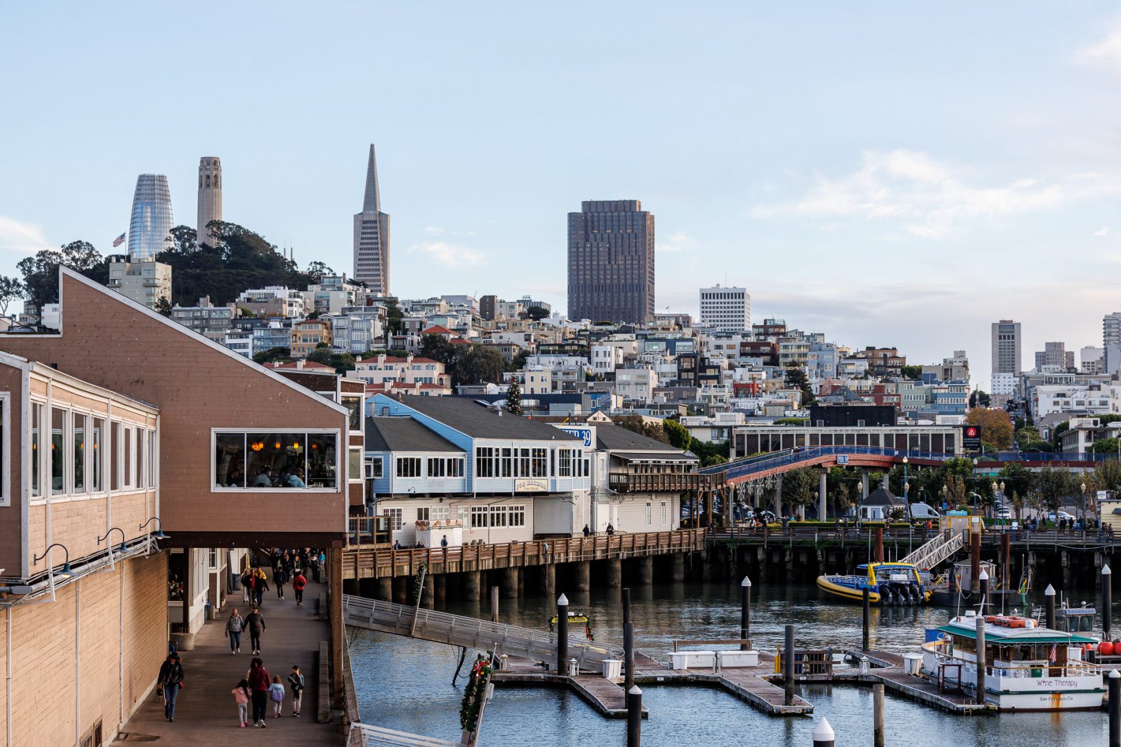 Nous poursuivons notre chemin et nous arrivons, après quelques kilomètres à pied, au Fisherman’s Wharf. Construit en 1853, Fisherman’s Wharf est le tout premier quartier portuaire de San Francisco. Son premier nom fut Meiggs Wharf mais il a peu à peu été remplacé par Fisherman’s Wharf (quai des pêcheurs) à cause des nombreux navires de pêche qui y étaient présents. Il est vite devenu un important centre de distribution de poissons frais, jusqu’à ce que la technologie moderne le mette sur la touche en 1950. On assiste alors à son déclin. À cette époque, la plupart des industries liées à la pêche ont dû fermer leurs portes ou déménager.
