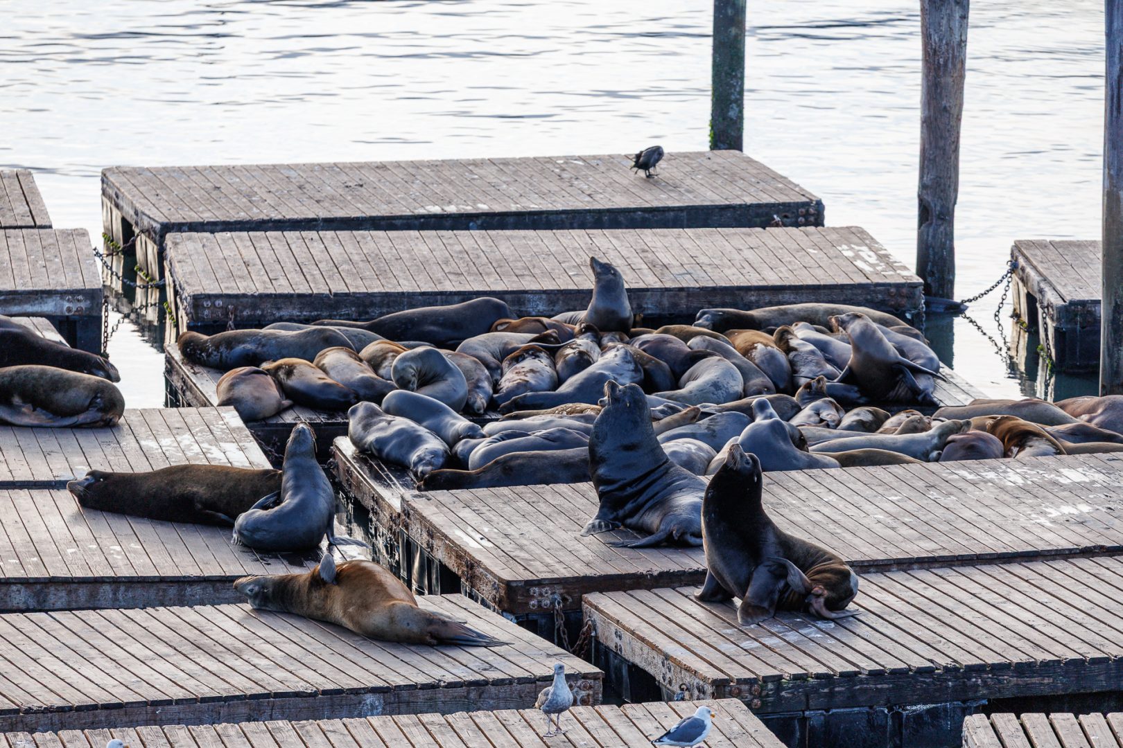 Après ce retour en enfance, nous allons voir les otaries. Le Pier 39 est réputé pour sa colonie d’otaries. Elles sont regroupées sur une des plates-formes en bois.