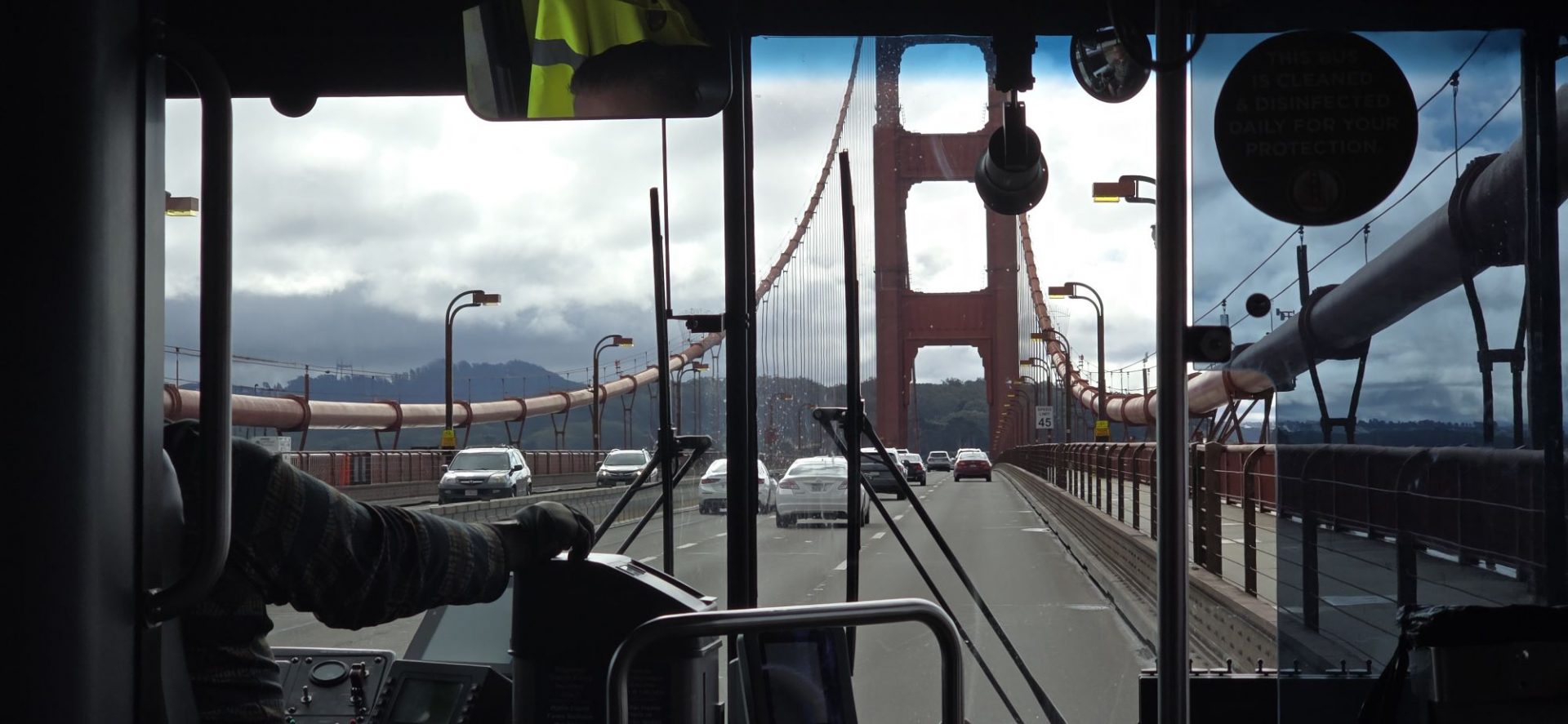 219667 km : Il n’y a toujours pas de ferry ce matin, aussi, c’est en bus que nous nous rendons à San Francisco. Nous traversons pour la première fois le mythique Golden Gate Bridge 🤩.