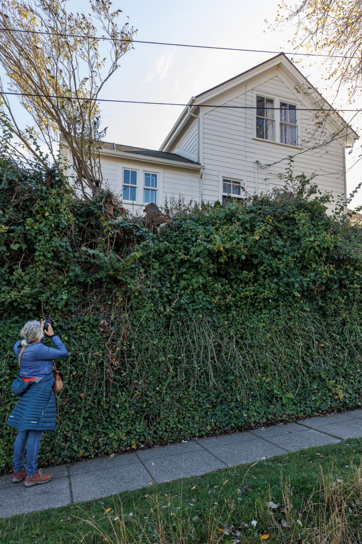 Ah, la gourmandise fait prendre tous les risques à cette petite wapiti… Même pas peur 😏!