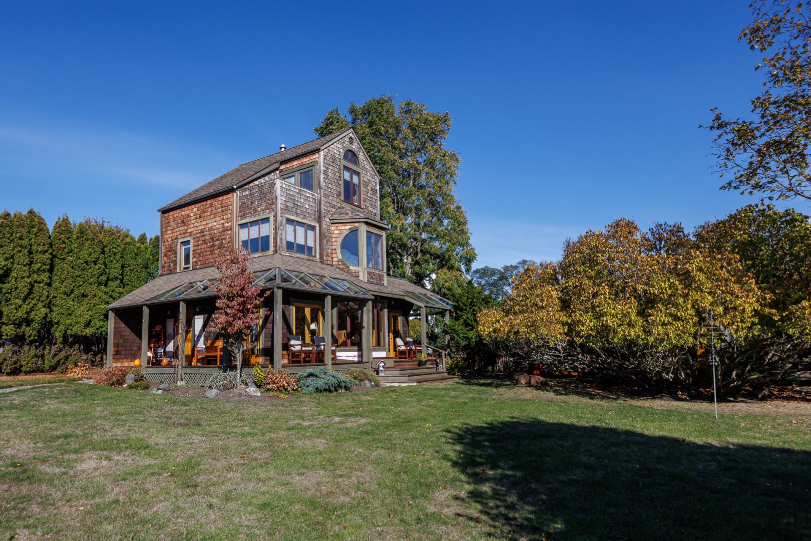 Il y a de très jolies maisons sur les hauteurs de Townsend mais celle-ci a une particularité. Il faut bien regarder sous les arbres à droite…