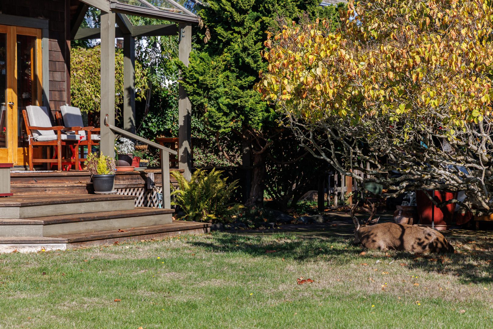 Non, ce n’est pas chien 🤔 ! C’est un wapiti mâle en train de faire sa sieste 😴 ! L’endroit doit être vraiment calme et accueillant….