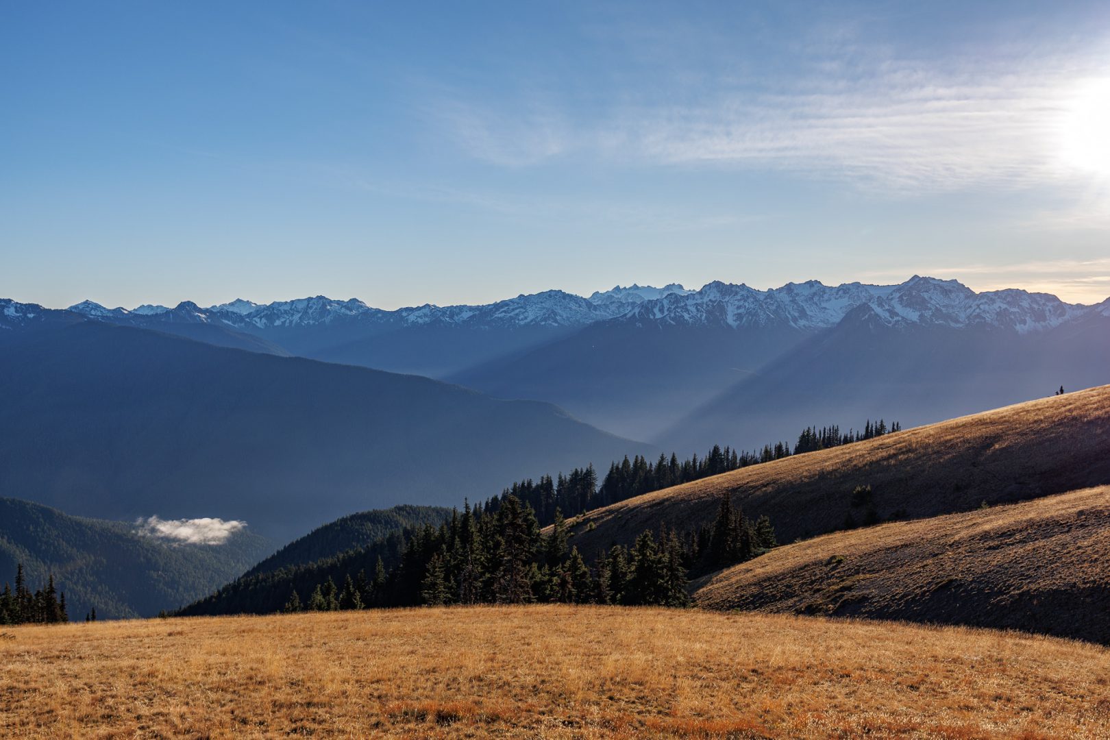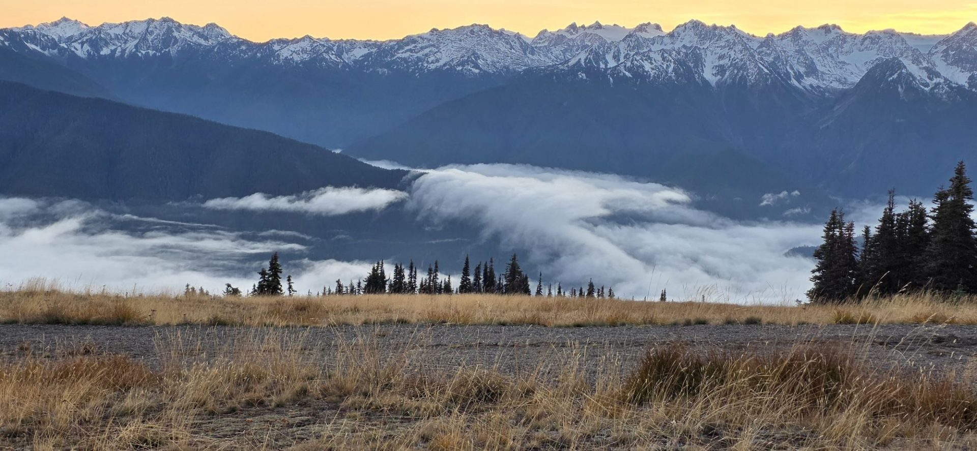 Nous voilà arrivés à Hurricane Ridge National Park. Nous sommes en plein shutdown aussi il n’y a personne à l’entrée du parc, pas de rangers et le visiteur center est fermé, mais ce n’est pas grave car le parc est ouvert 👍 Comme il est déjà tard, nous allons juste faire un petit tour sur les hauteurs pour admirer le magnifique paysage 🤩