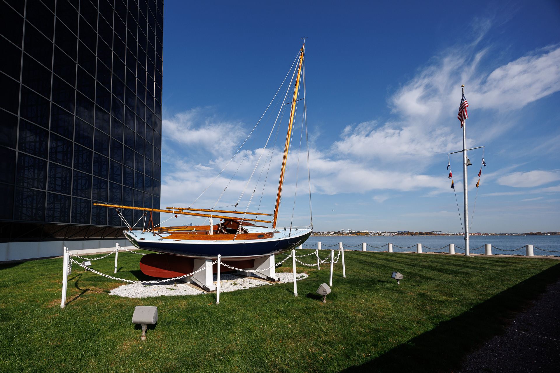 A côté de l’escalier figure le voilier de JFK avec lequel il aimait naviguer.