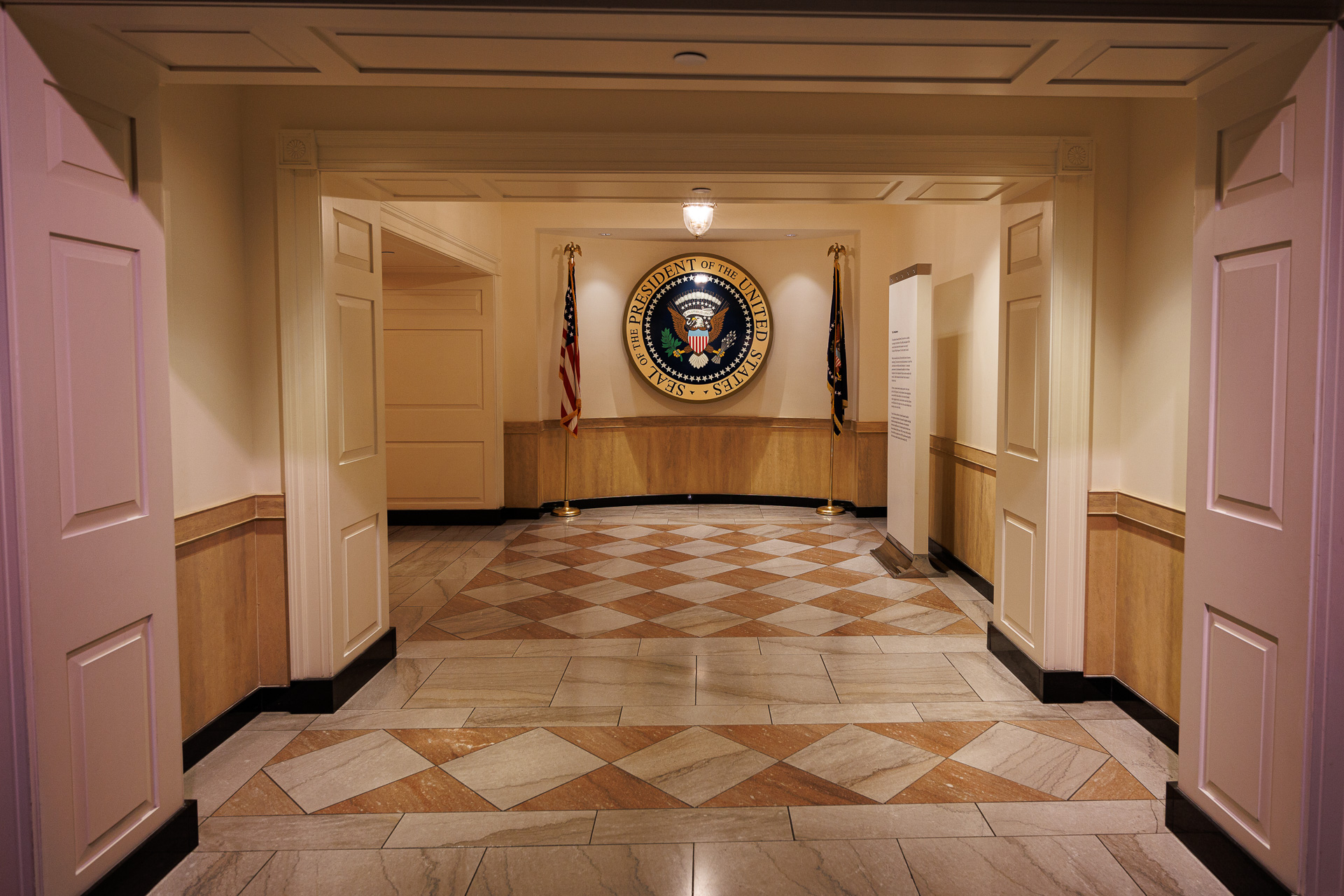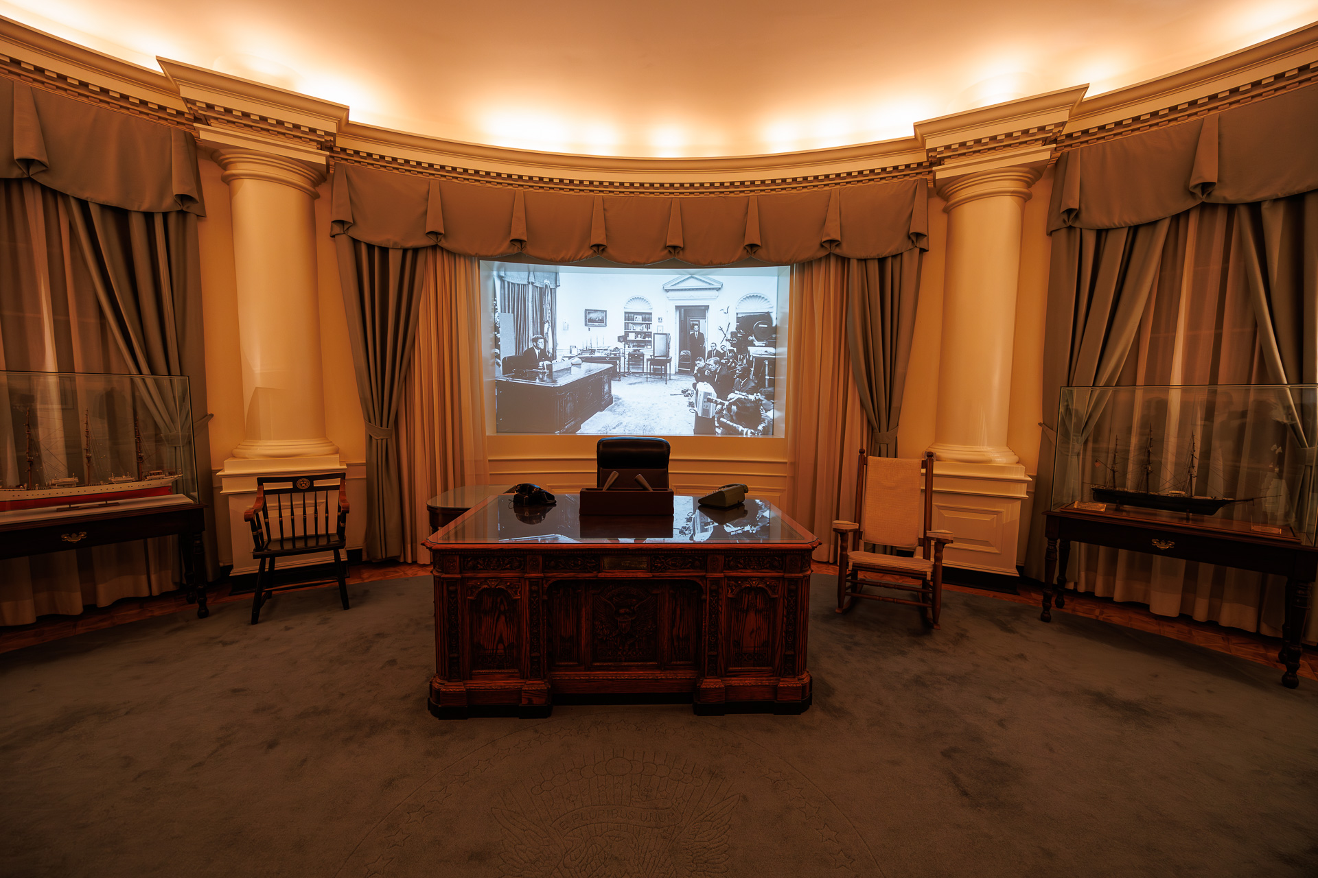On y trouve même une reconstitution du couloir de la Maison Blanche et du bureau oval.