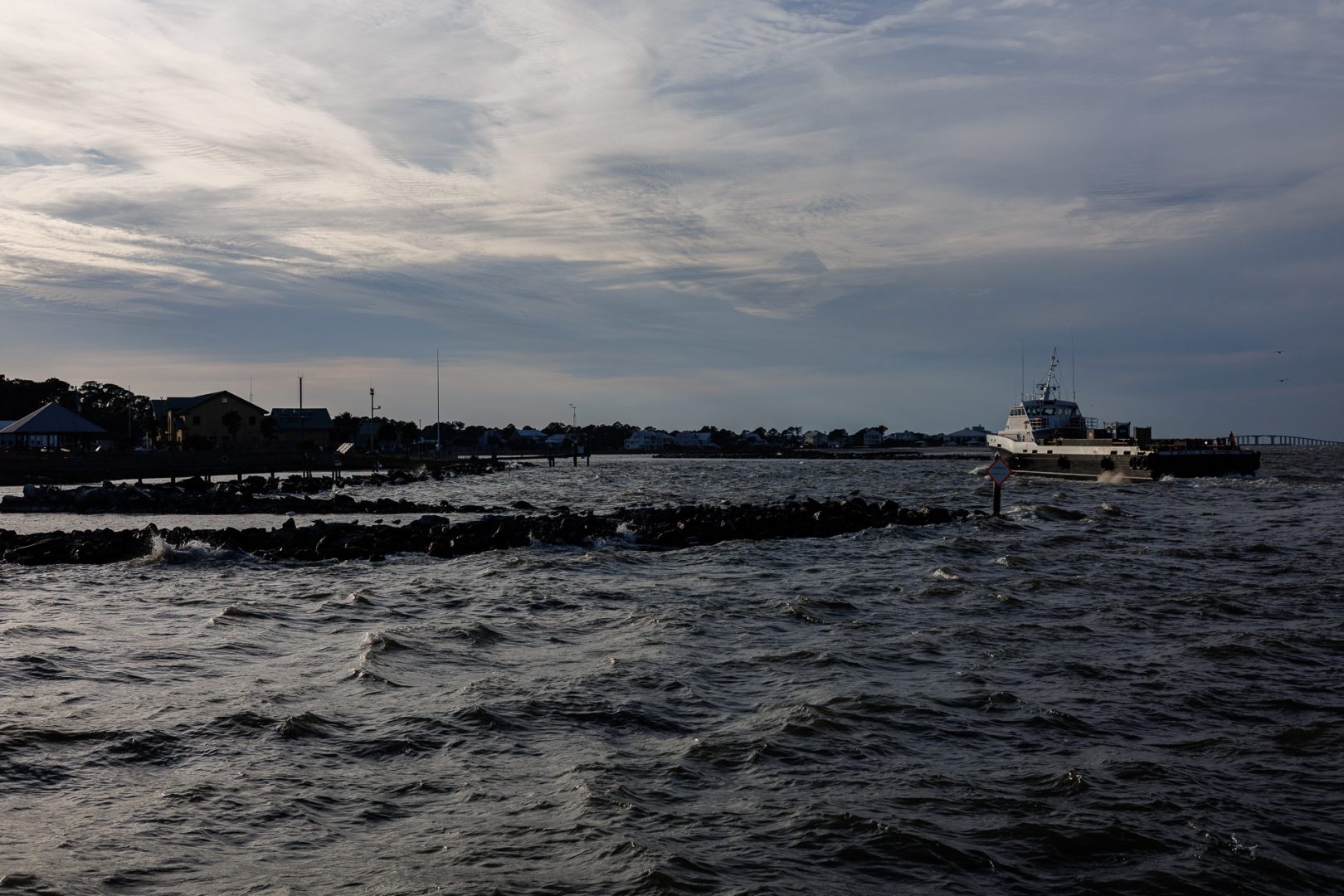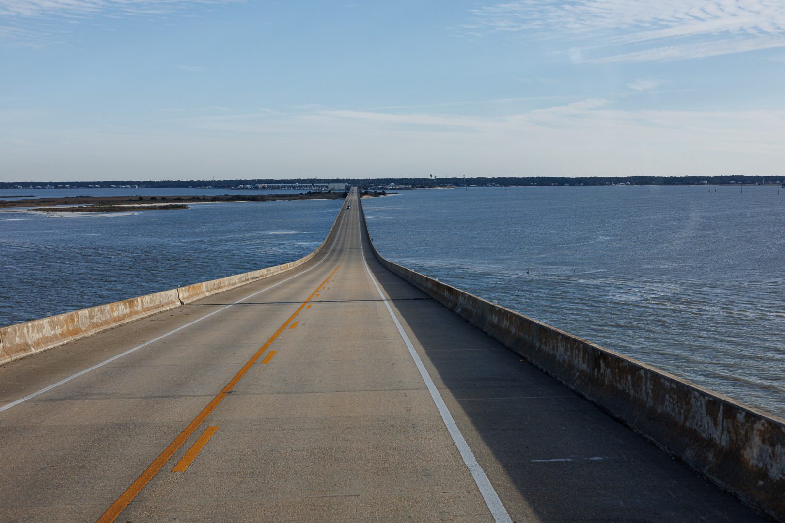 Nous partons maintenant en direction de notre bivouac sur Dauphin Island, longue et étroite île à 5 kilomètres de la côte américaine à laquelle elle est reliée par un pont.