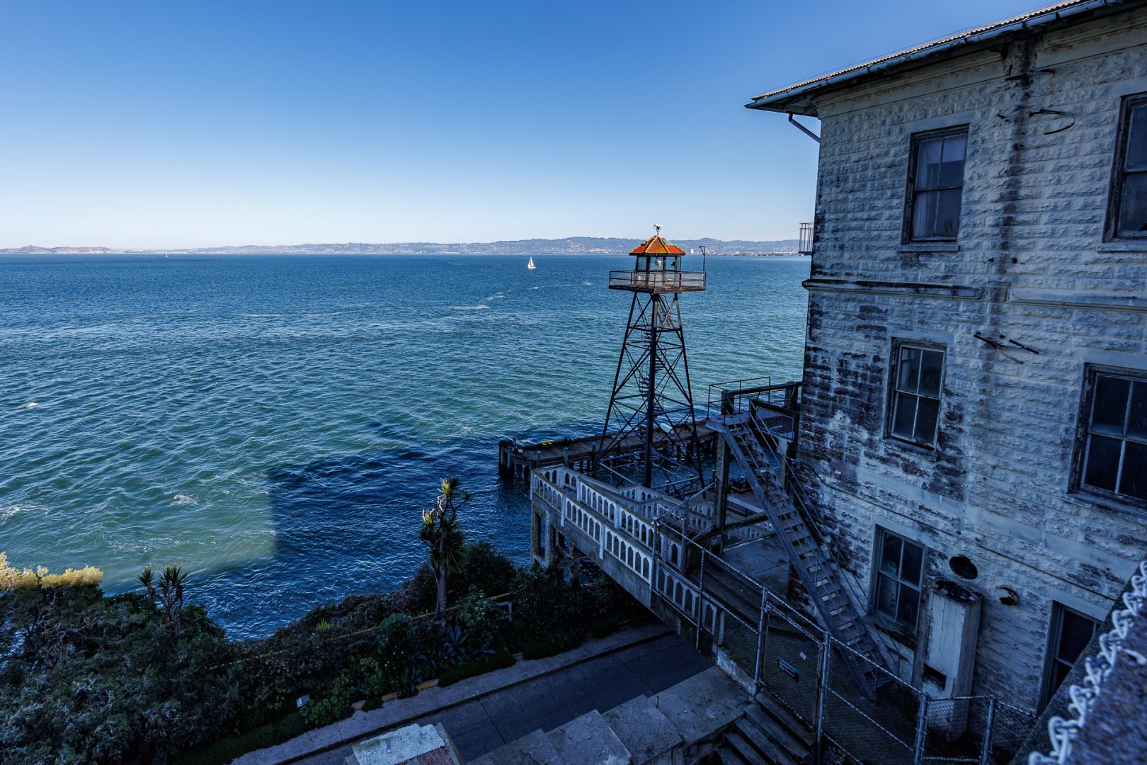 Le mirador date des années 1930. Durant son fonctionnement, Alcatraz comptait six miradors, tous gardés par des surveillants armés. Ces miradors étaient très efficaces contre toute tentative d’évasion. Entre 1934, date d’ouverture de la prison fédérale, et sa fermeture en 1963, il y a eu tout de même 14 tentatives d’évasion impliquant 36 détenus. Bilan des 36 évadés : 23 ont été rattrapés, 6 ont été tués par balle, 2 se sont noyés, 5 sont présumés noyés car leurs corps n’ont jamais été retrouvés !