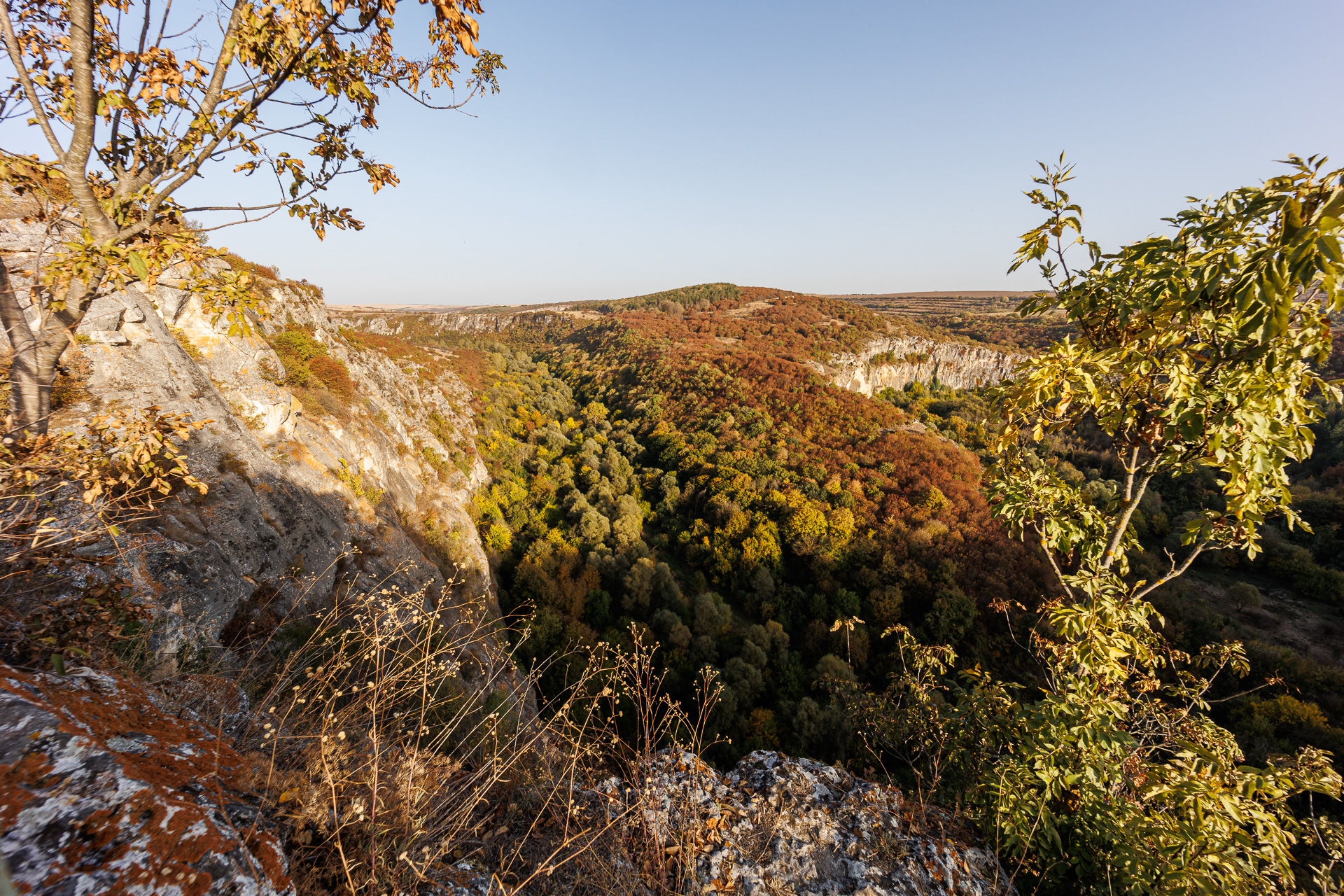 167950 km : Ce matin, nous quittons Veliko Tărnovo pour nous rendre à la grotte Orlova Chuka. Nous traversons des paysages bien jaunis par le manque d’eau… c’est impressionnant !