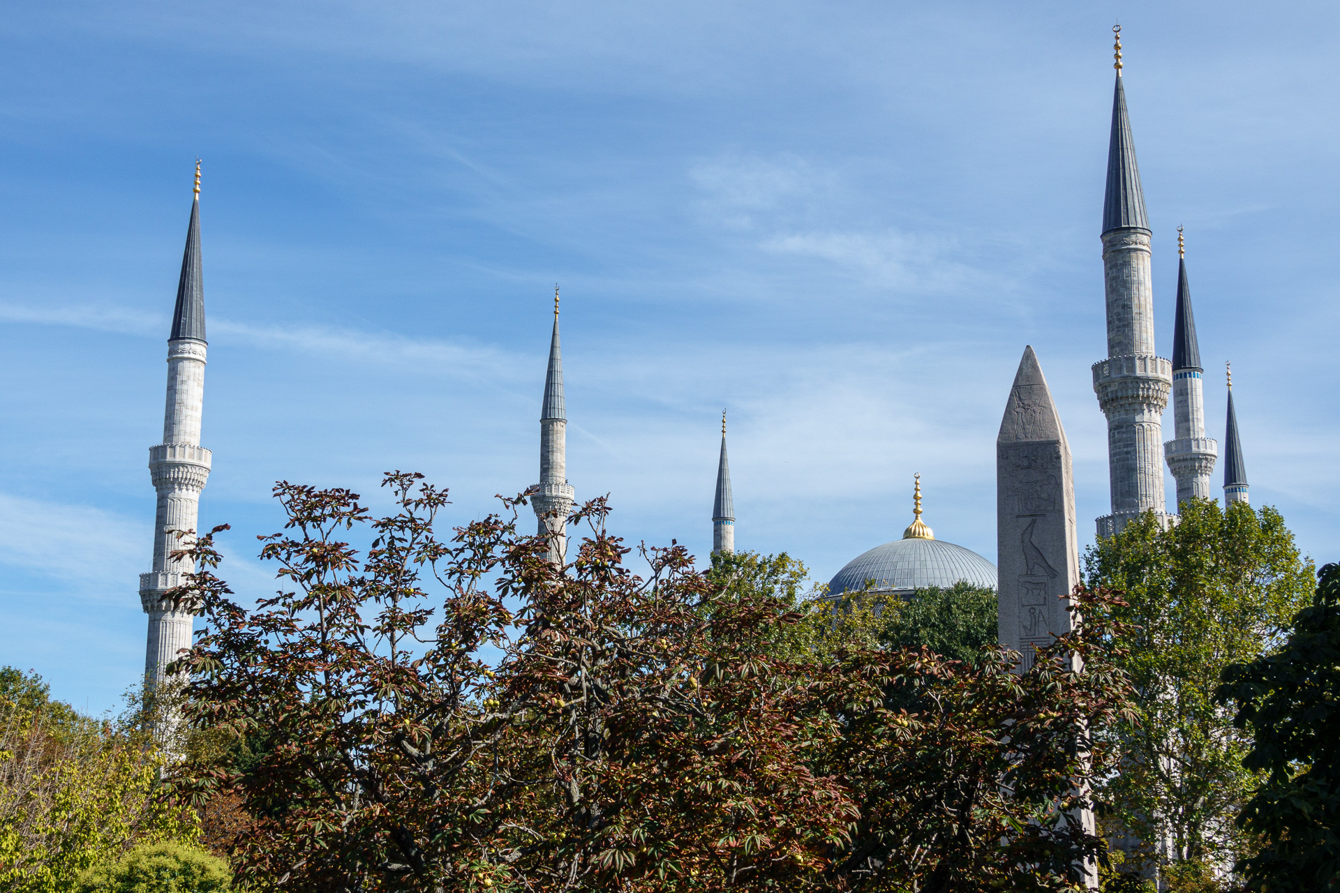 En sortant du musée on a une belle vue sur les 6 minarets de la mosquée bleue et l’obélisque de Théodose (obélisque égyptien avec hiéroglyphes datant de 1400 avant JC).