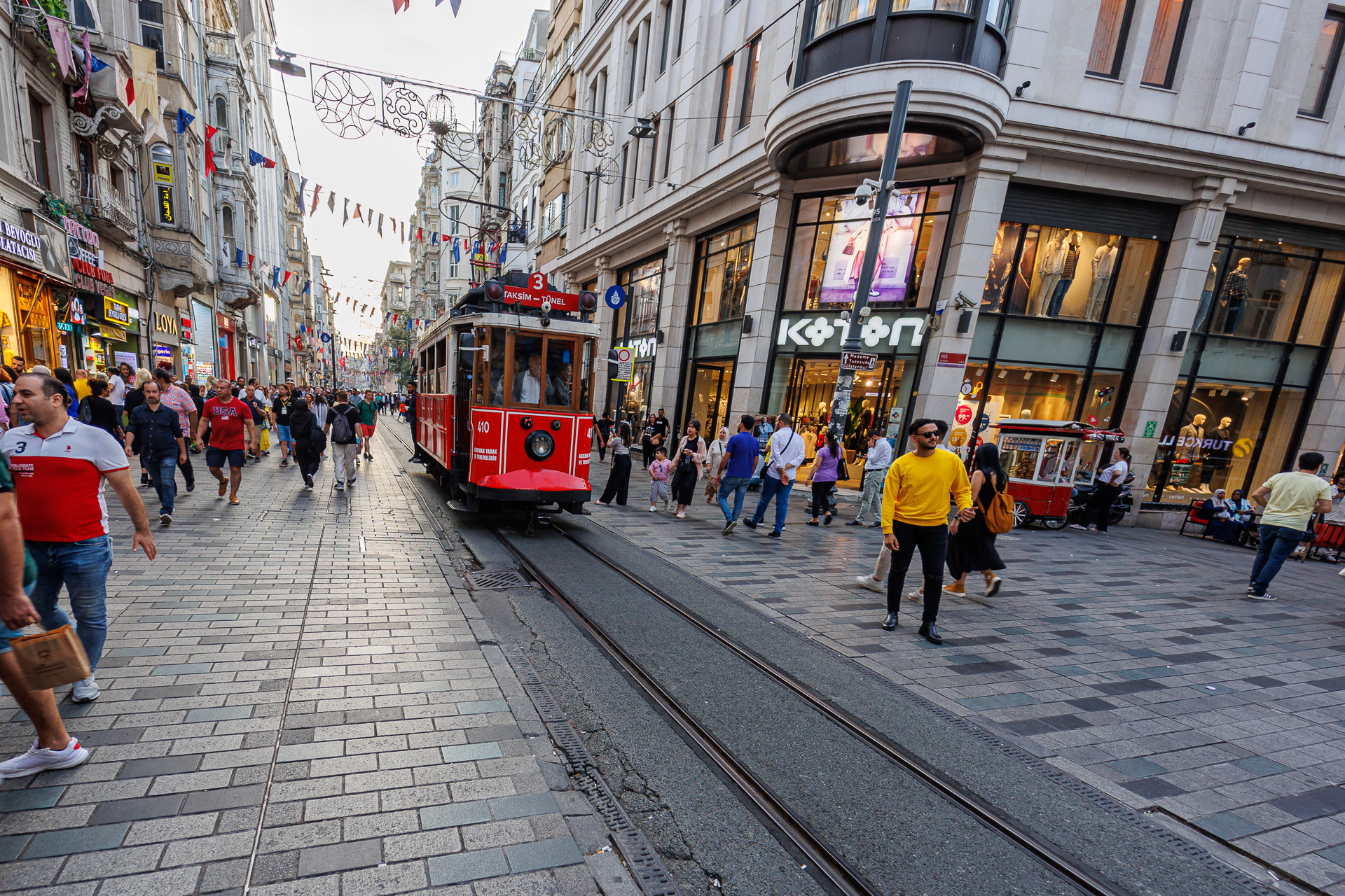 Nos quittons la place par Istiklal Caddesi (rue de l’Indépendance), rue piétonne qui incarne parfaitement la Turquie du 21ème siècle, à la fois moderne et traditionnelle. Les Champs élysés locaux, en mieux selon notre ressenti.