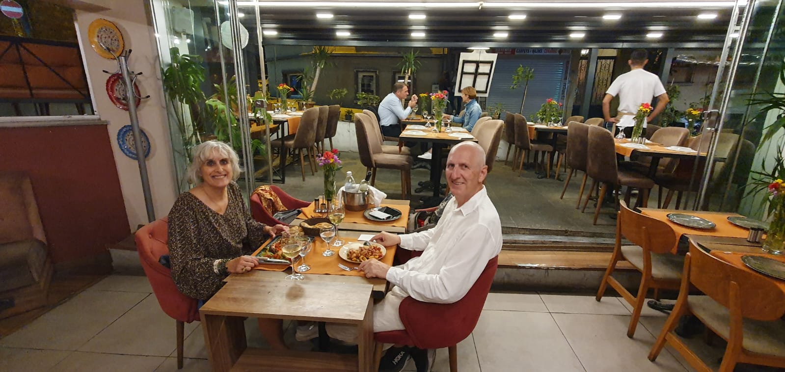Dernière soirée à Istanbul et donc petit restaurant sympathique avant de rentrer au camion avec poulpe pour Geneviève et casserole de fruits de mer pour moi. Le tout arrosé d’un Chardonnet !! Hummmm 😋😋