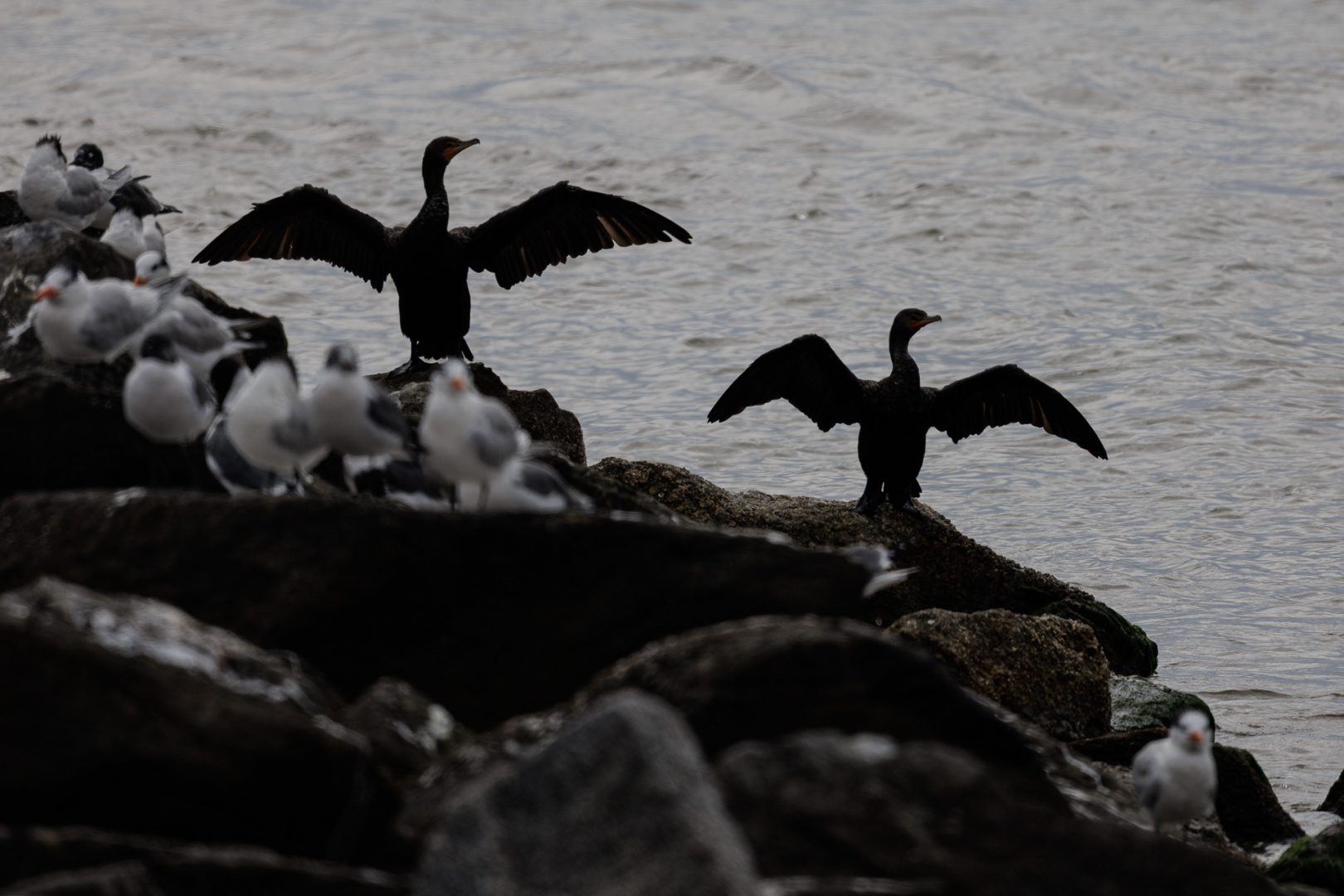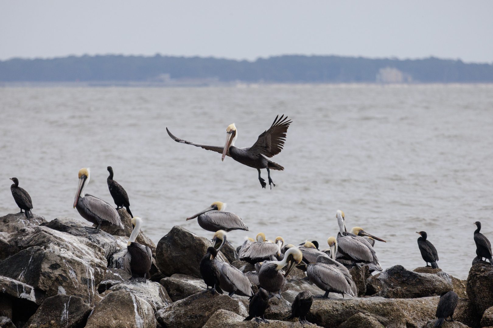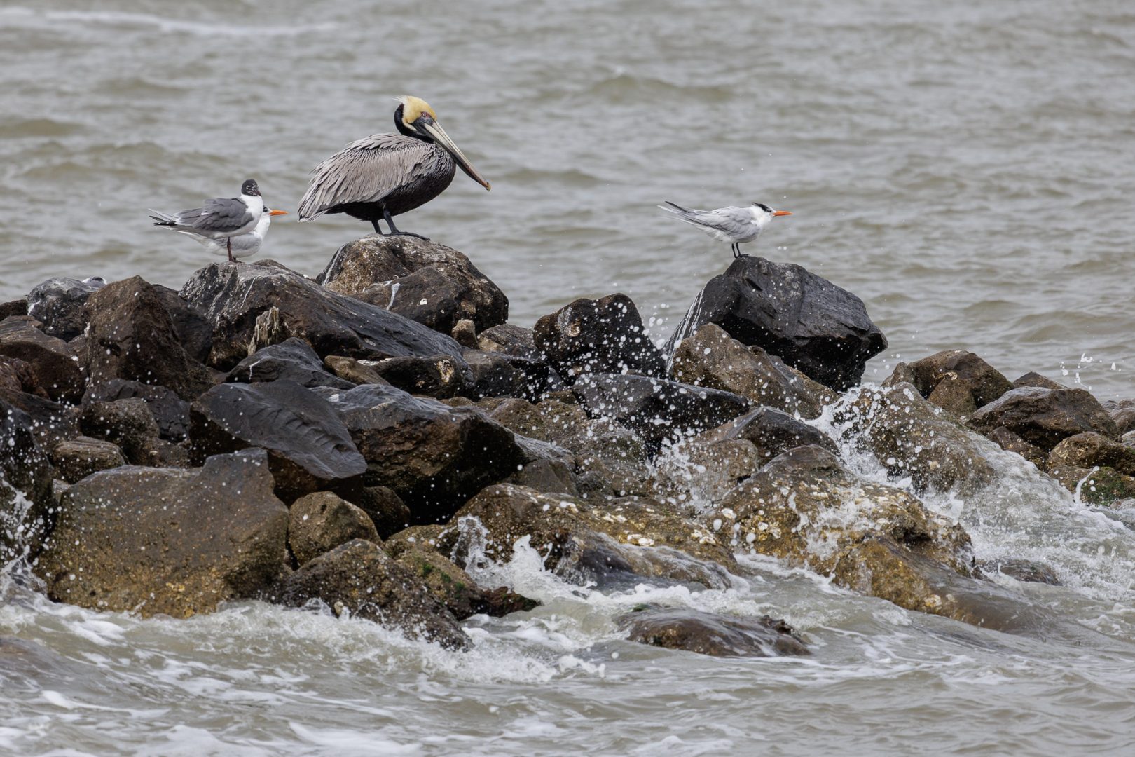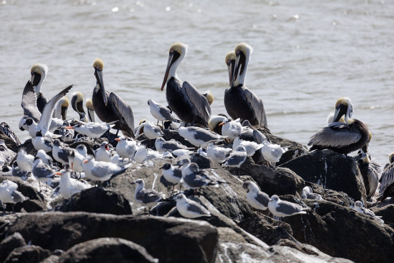 Nous resterons un long moment à admirer le ballet des cormorans, des mouettes, des pélicans, celui malheureusement furtif d’un dauphin, et d’autres petits oiseaux marins…