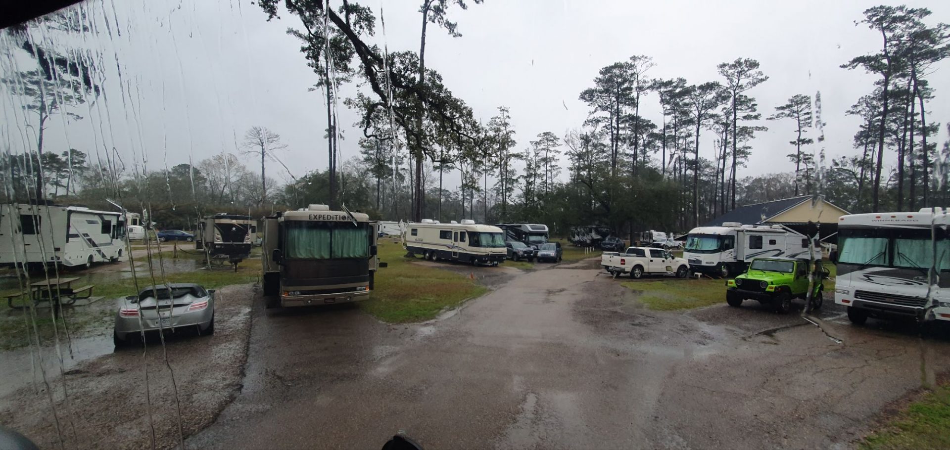 Nous nous arrêtons quand même pour faire les vidanges et le plein d’eau dans un camping sous une pluie battante 🤪… l’objectif étant d’être vide en arrivant à la Nouvelle-Orléans
