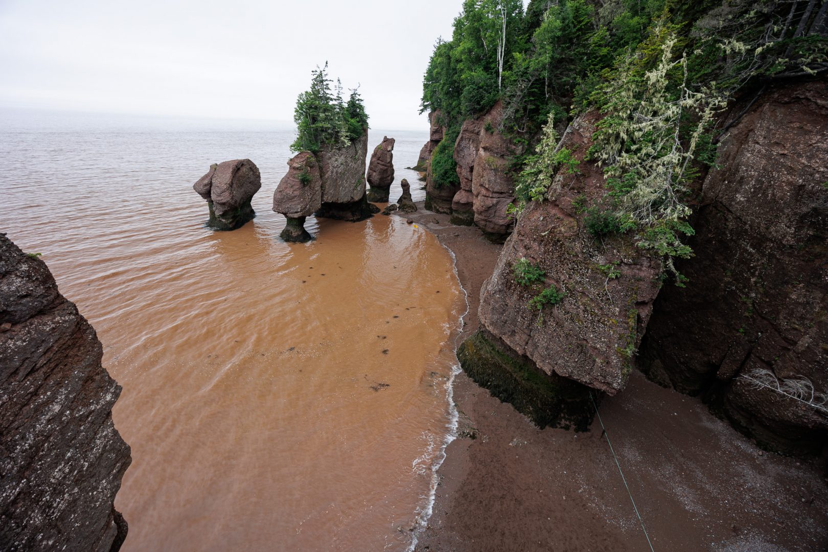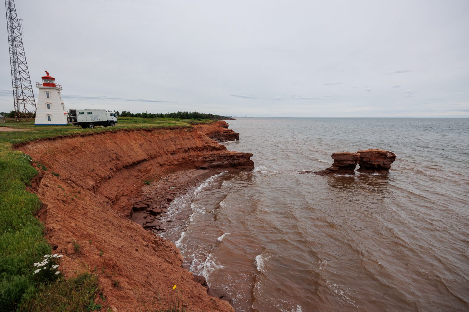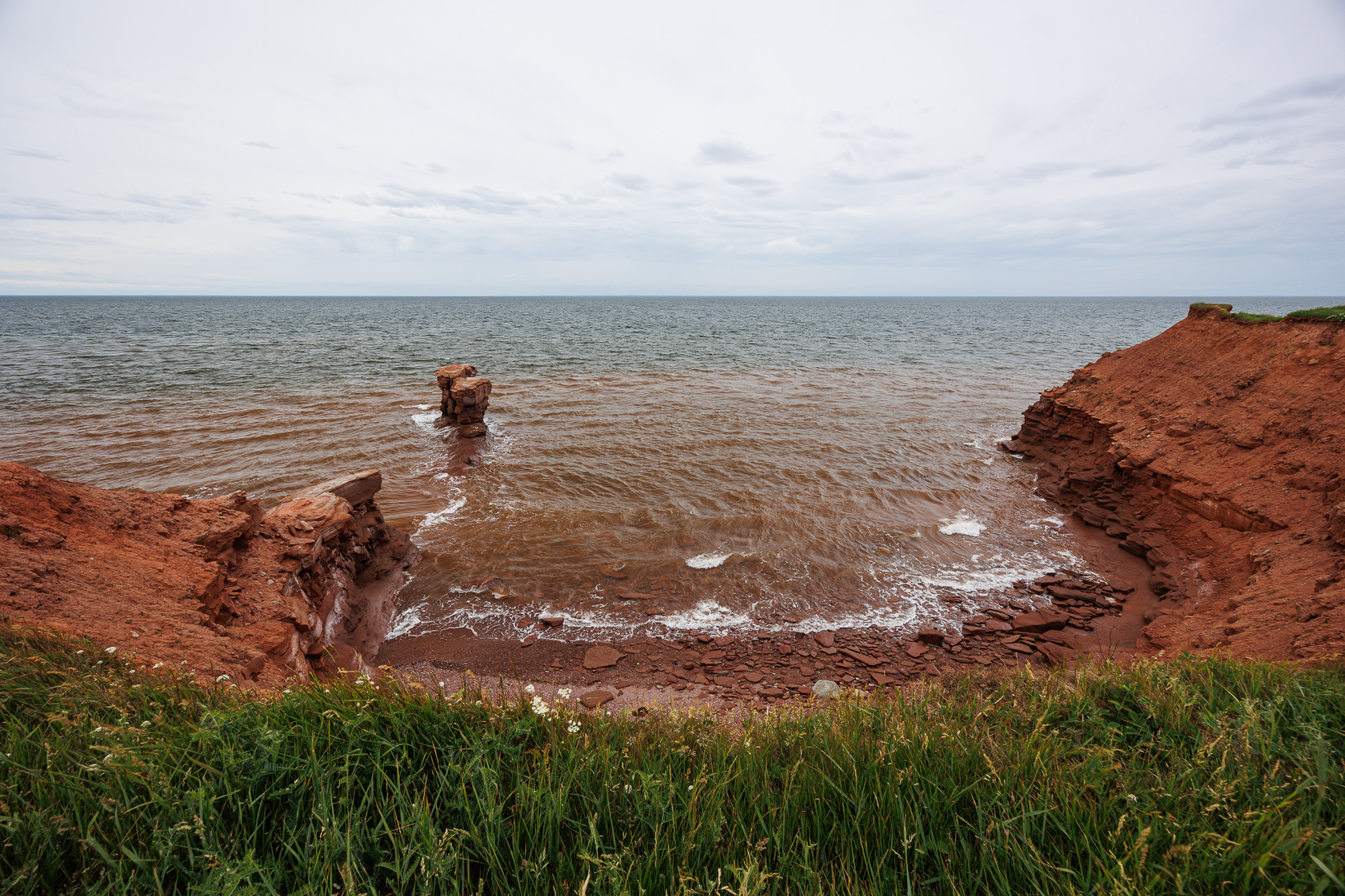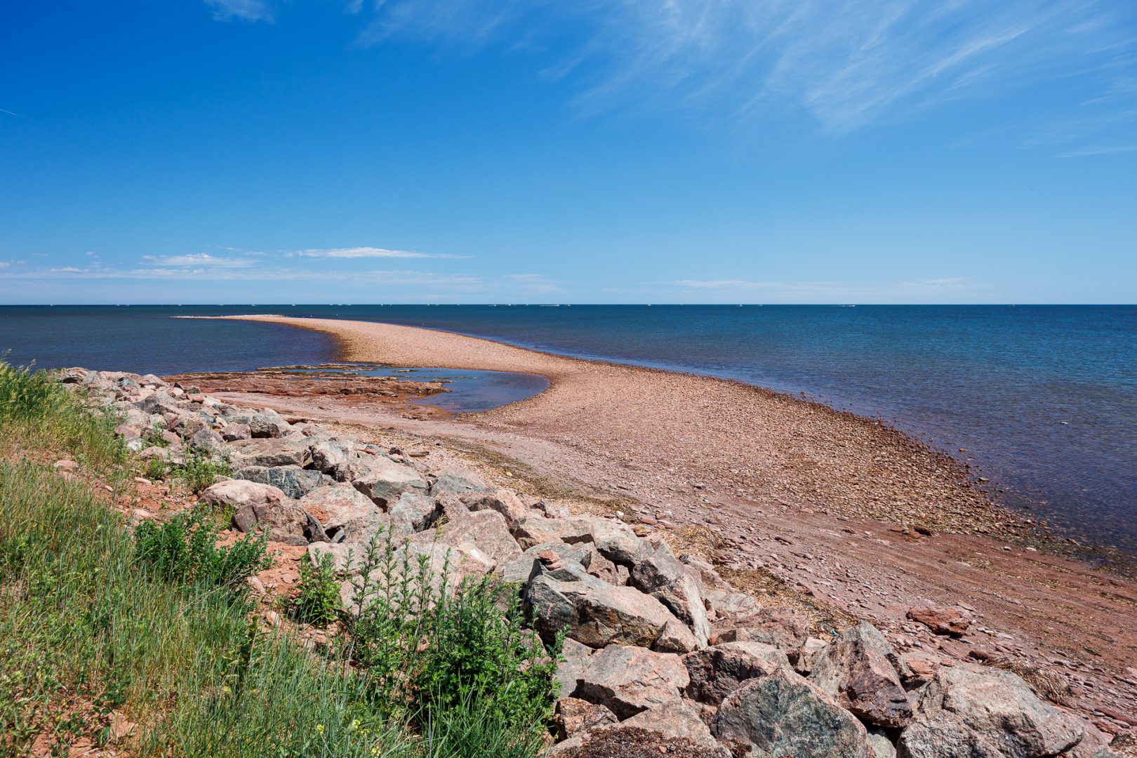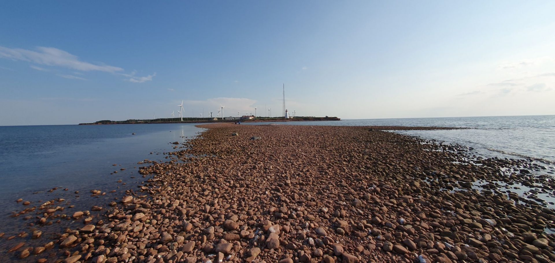 Un récif large fait de roches sédimentaires sépare le détroit de Northumberland du golfe Saint-Laurent. A marée basse, on en devine l’étendue ! C’est le plus grand récif naturel d’Amérique du Nord (près de 2 kilomètres).