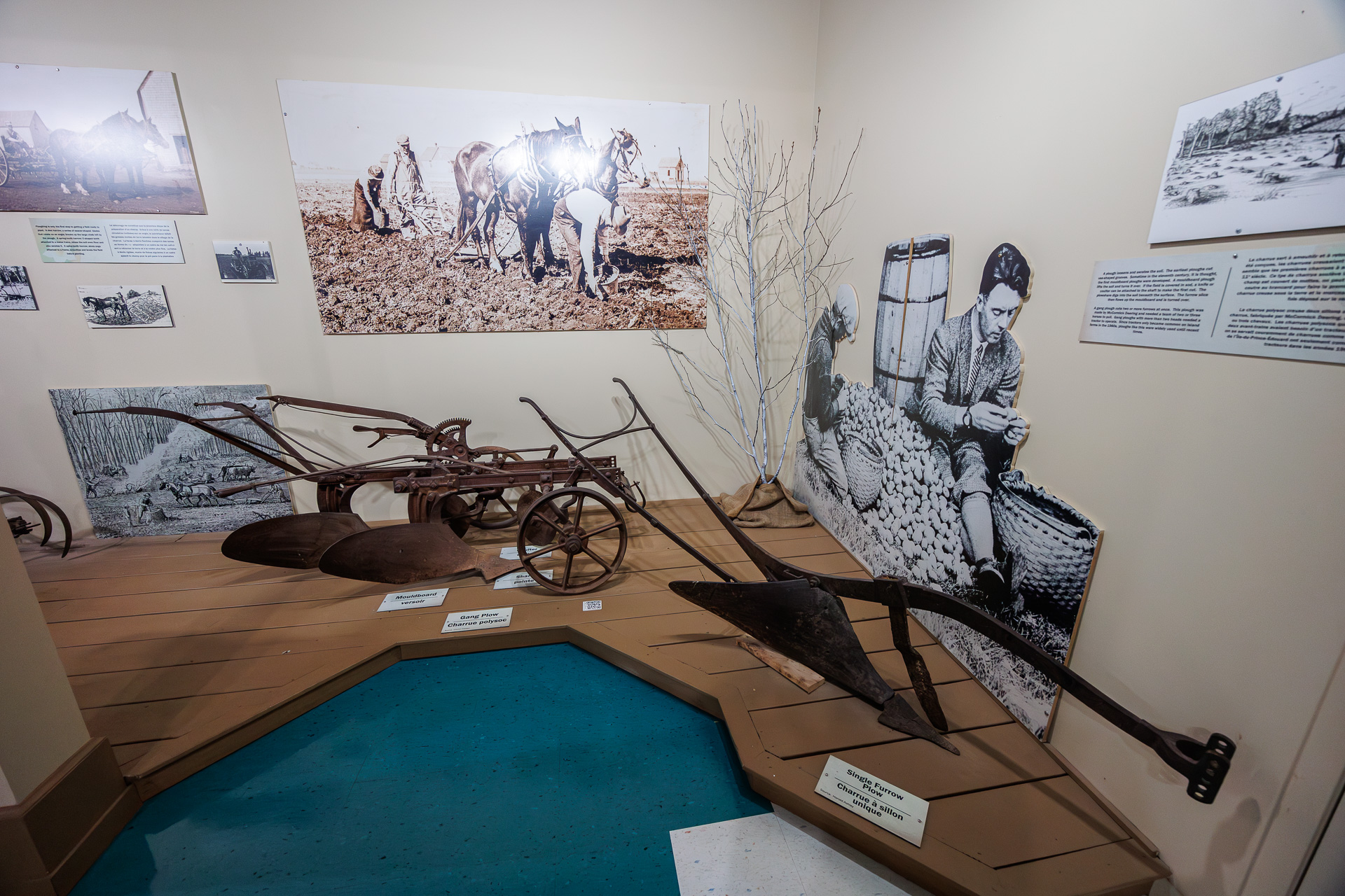 L’exposition présente beaucoup d’informations tant sur la pomme de terre elle-même que sur les matériels utilisés. La charrue polysoc sert à ameublir et à retourner la terre. Les premières charrues à socs remonteraient au 11ème siècle.