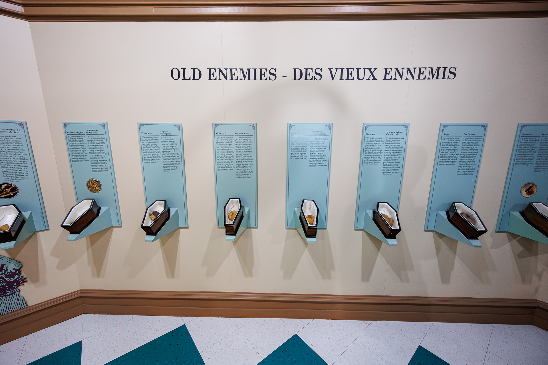 Une façon originale de présenter toutes les maladies susceptibles d’attaquer la pommes de terre et de détruire une récolte… c’est explicite 🤣 ! Le climat de l’île et son isolement ont aidé à limiter le développement des maladies.