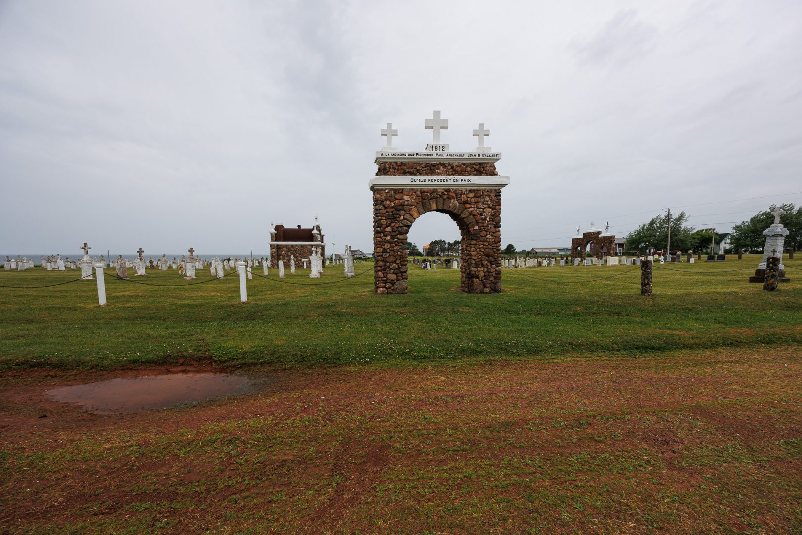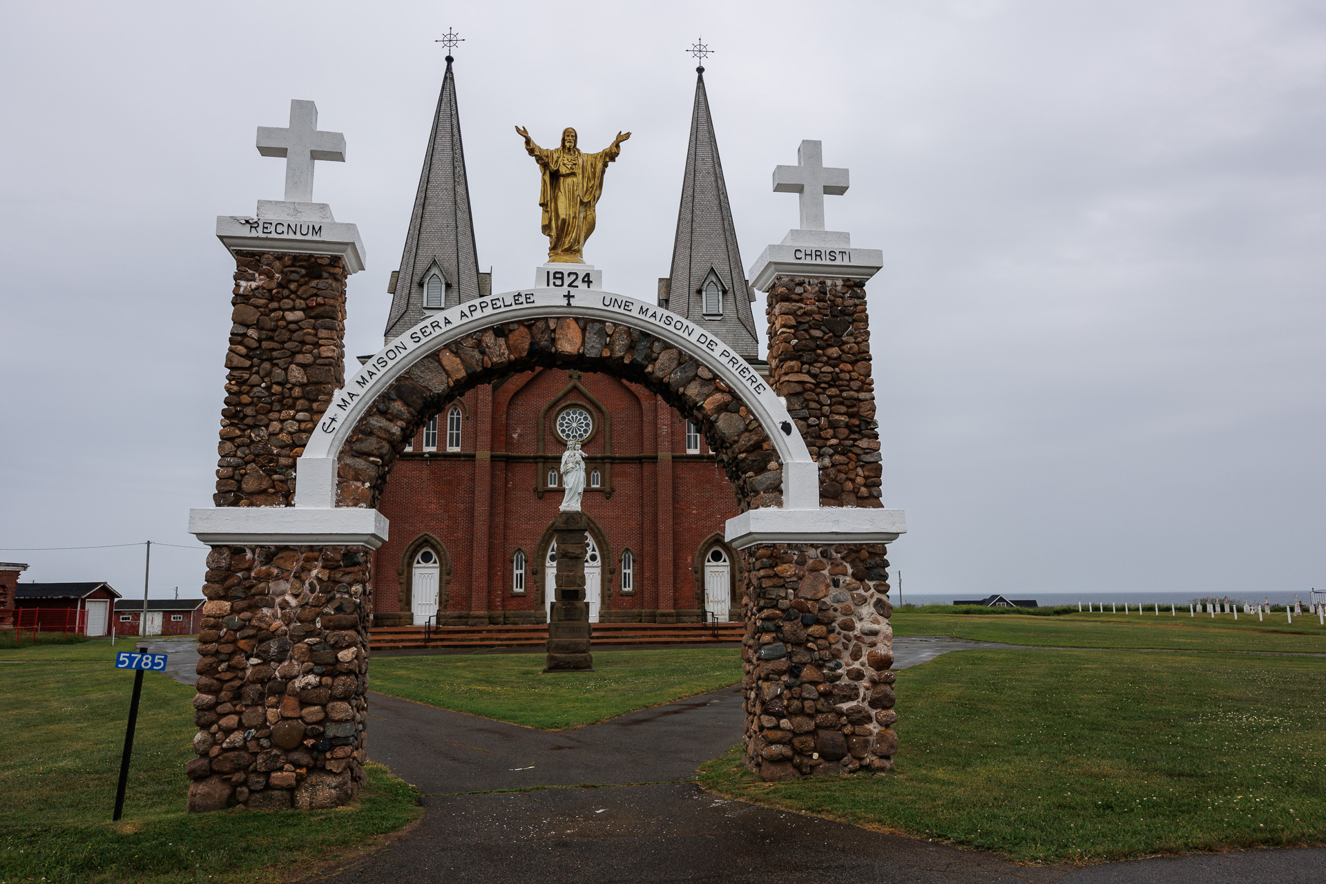 Nous ferons une halte pluvieuse à Notre Dame du Mont Carmel. Elle a été construite en 1898 grâce aux fonds recueillis par les paroissiens. C’est le foyer spirituel de nombreuses familles acadiennes de la région du Mont Carmel sur l’Île-du-Prince-Édouard. Quatre cent cinquante mille briques ont été fabriqués sur place pour la construction !