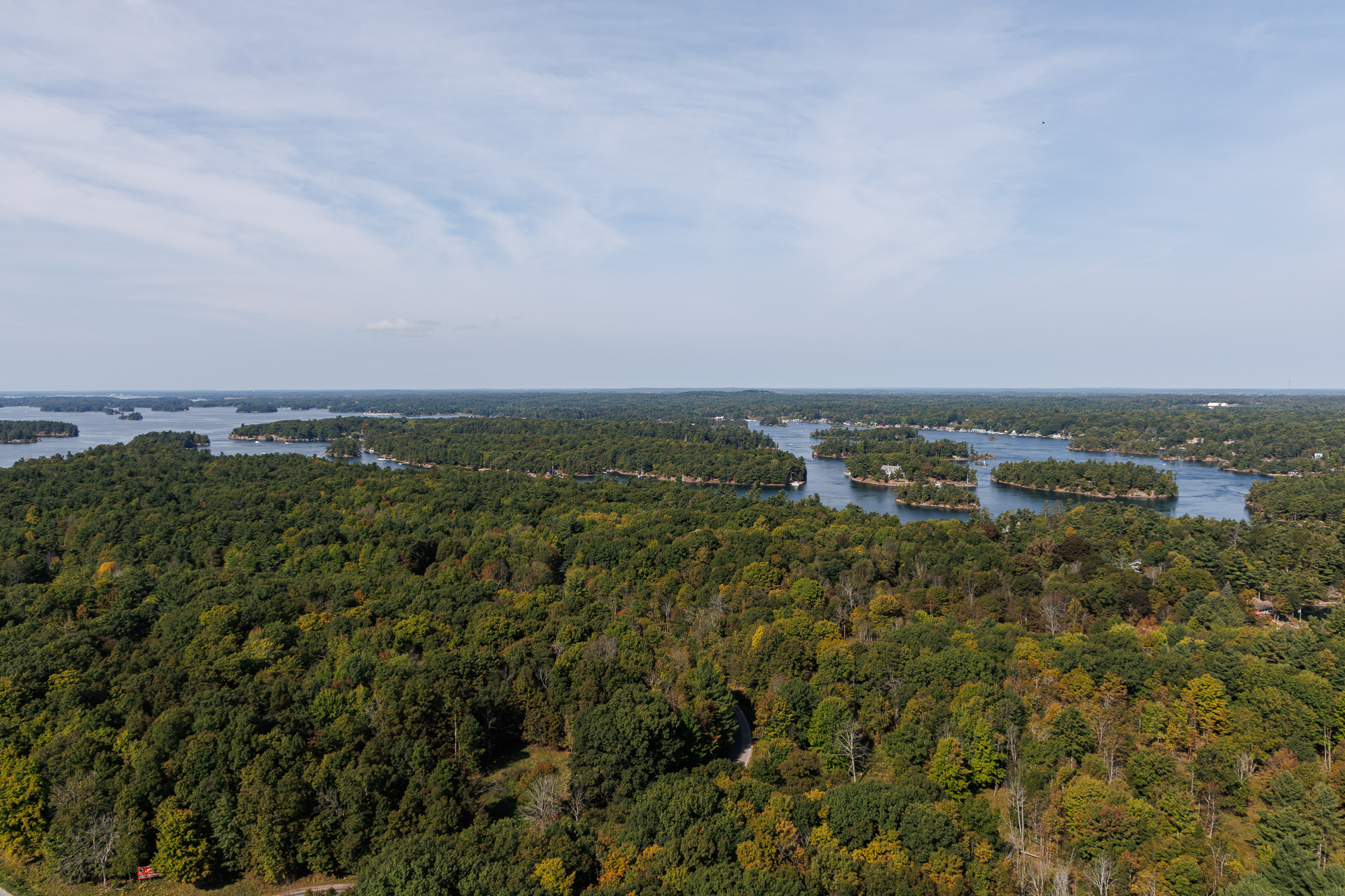 La tour des Mille-Îles est une tour privée d’observation en béton de 130 mètres de haut située sur l’île Hill, en Ontario, à environ 620 mètres de la frontière de l’État de New York. Construite et inaugurée le 15 juin 1965, nous y avons une vue magnifique sur les Mille-Îles.