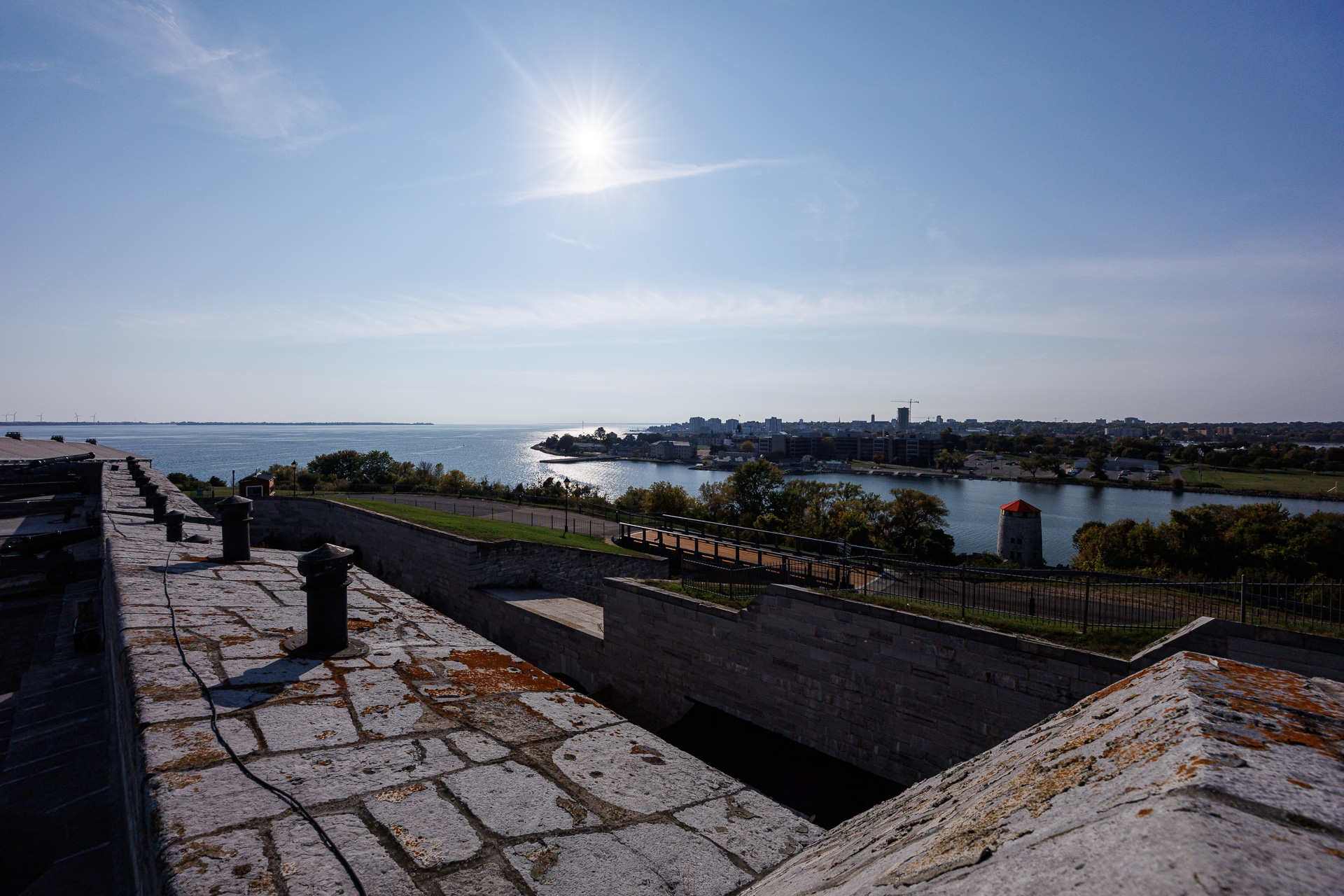 Depuis le fort, nous avons une belle vue sur le Saint-Laurent, toujours aussi large, et la ville de Kingston.