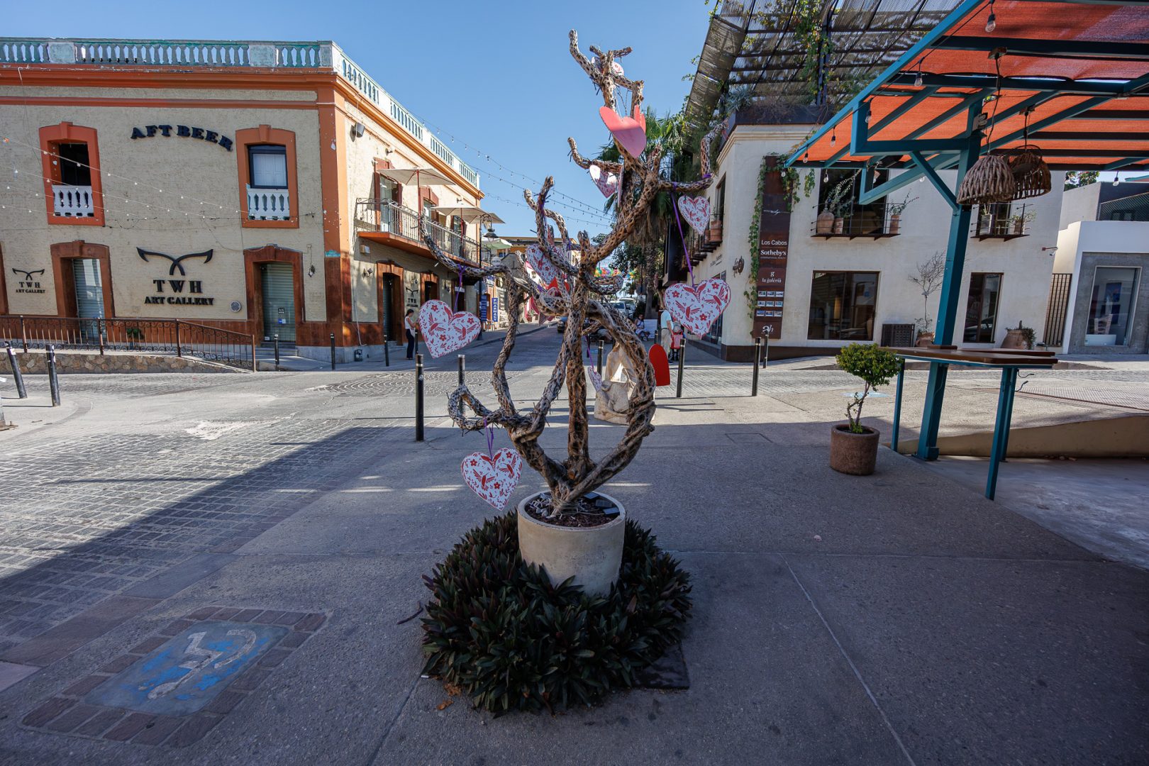 Après avoir trouvé facilement une place le long de l’avenue principale, nous partons à la découverte de la ville. San José del Cabo a été fondée en 1730 par le jésuite Nicolas Tamaral. Initialement habitée par le peuple Pericú et explorée par Hernán Cortés en 1535, elle a longtemps servi de halte stratégique pour l’approvisionnement en eau douce des galions espagnols. Durant la guerre américano-mexicaine en 1847, la ville a été le théâtre de la défense du territoire mexicain.