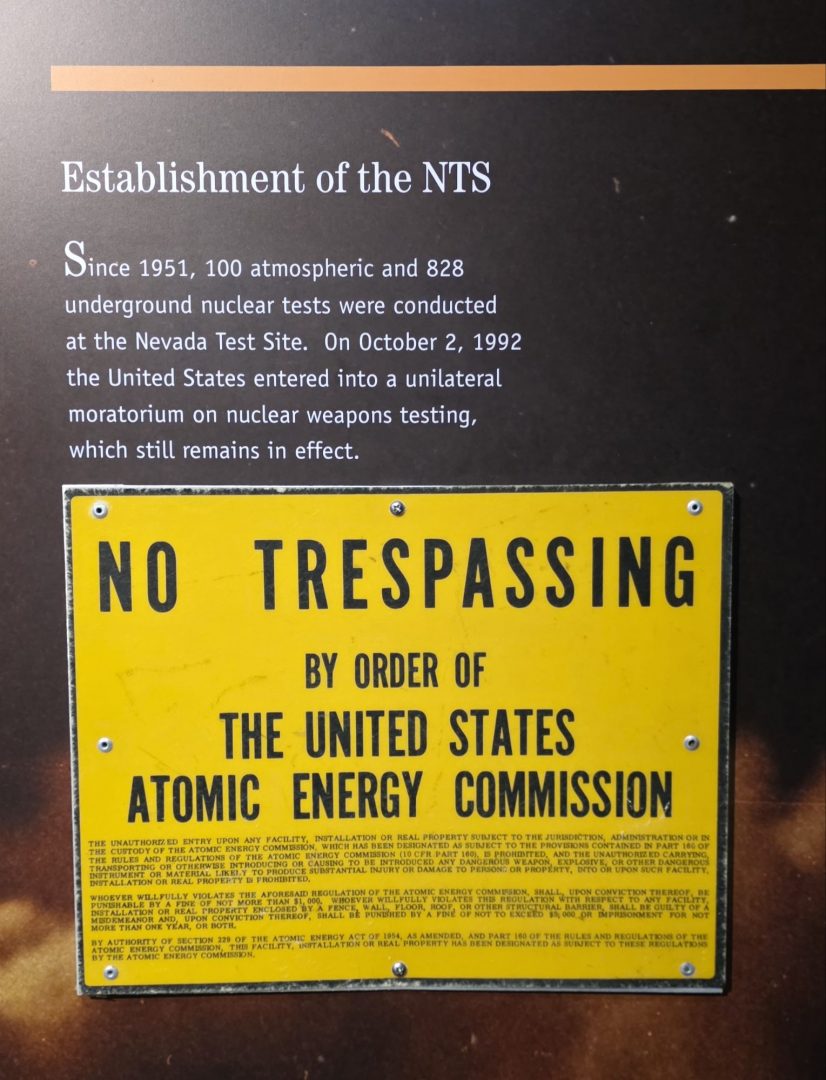 Le Musée national des essais nucléaires (Atomic Testing Museum) est une institution nationale privée à caractère scientifique, historique et éducative. Inauguré en 2005, il retrace l’histoire du programme d’essais d’armes nucléaires américain sur le site d’essais du Nevada situé dans le désert de Mojave, à environ 105 km au nord-ouest de Las Vegas… C’est tout proche 😱 ! Il a servi de 1951 à 1992 pour 928 essais nucléaires, le record mondial d’essais nucléaires sur un même site.