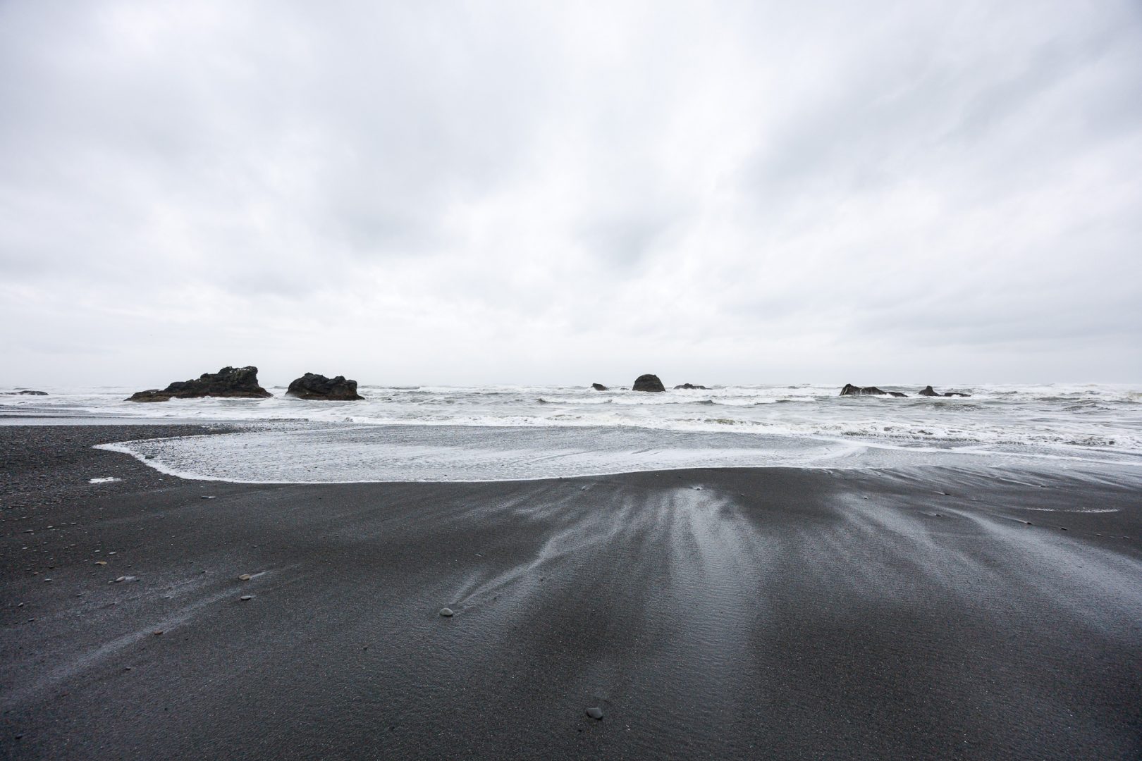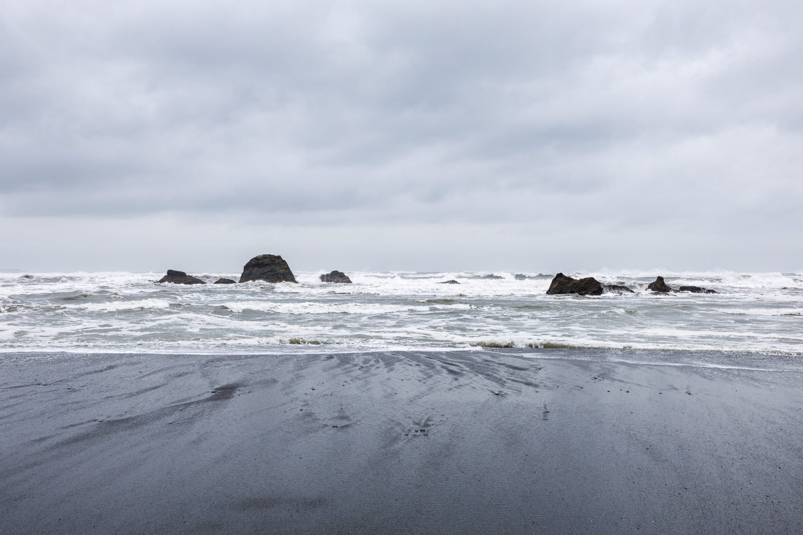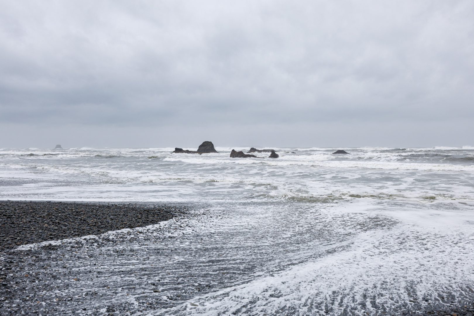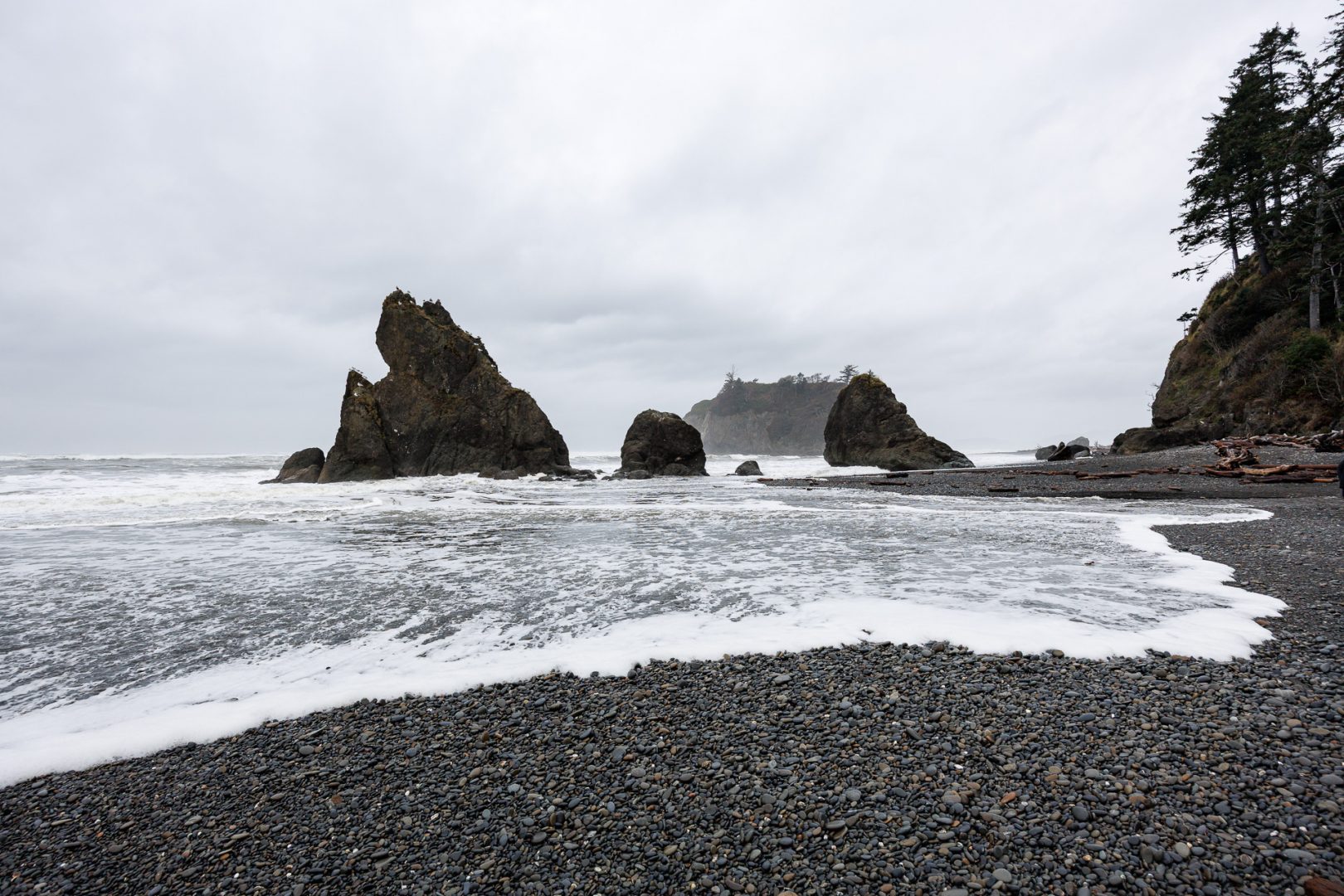 Malgré une météo capricieuse, nous avons pu profiter pleinement de notre journée. Ce sont les yeux remplis d’étoiles et les appareils photos « full » que nous nous dirigeons vers notre bivouac du soir sur un parking proche du Kalaloch Lodge et des bois flottés.