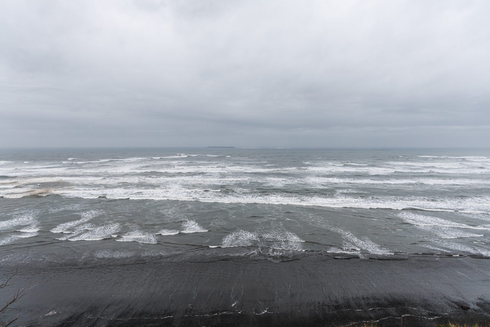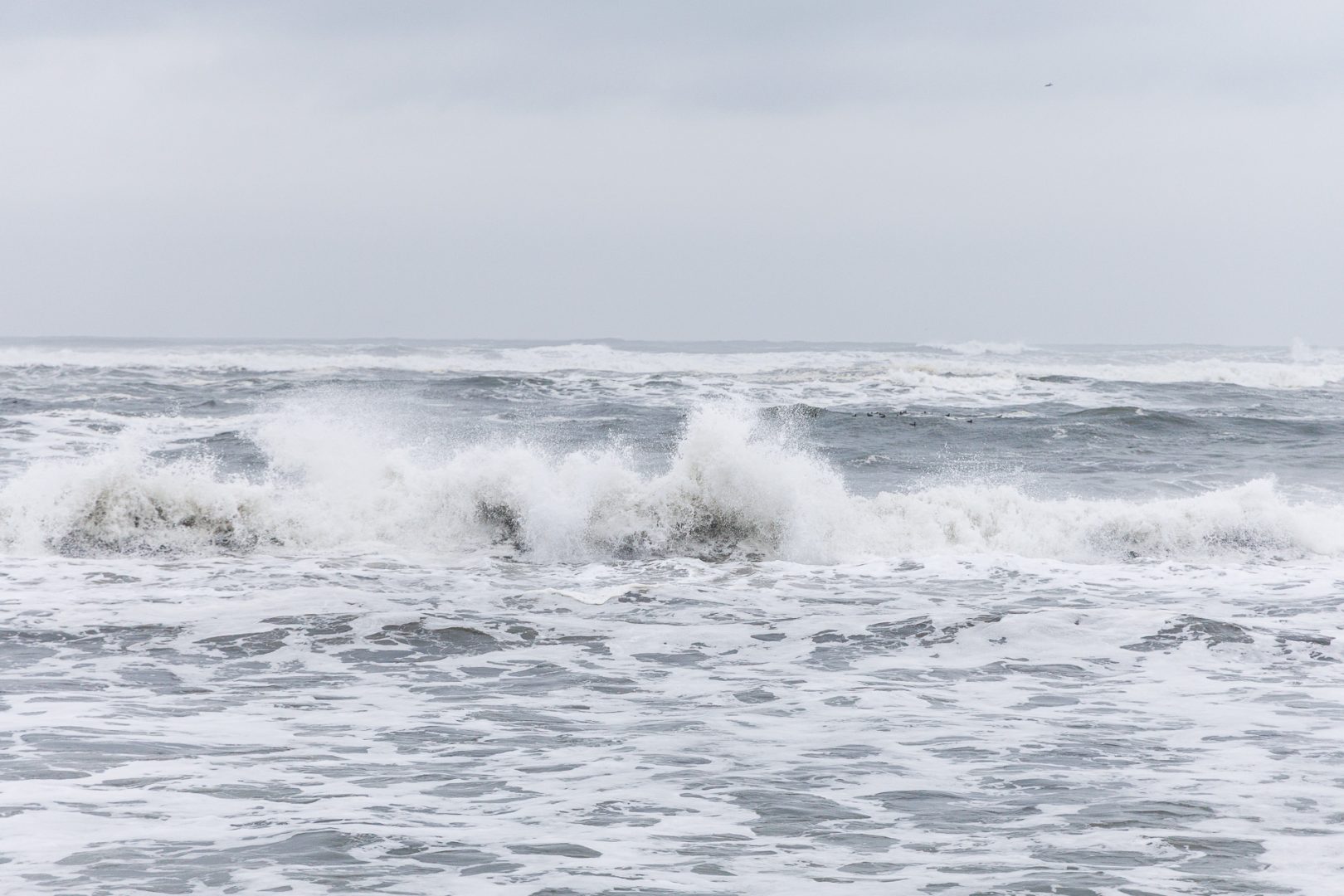 La puissance des vagues et les variations de marées déposent d’énormes troncs sur la plage. La baignade est d’ailleurs interdite car nager entre ces énormes troncs flottants est bien sûr extrêmement dangereux.