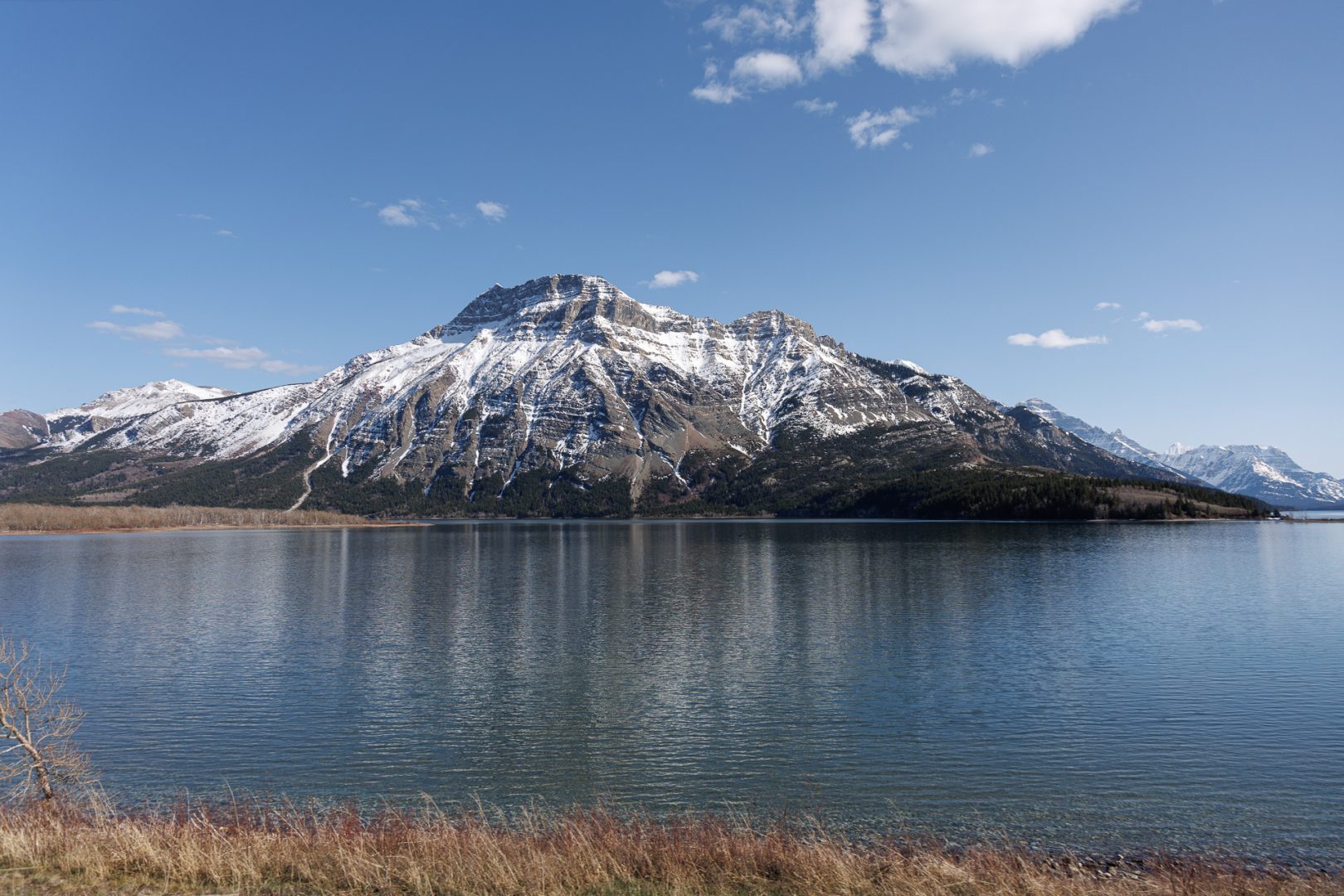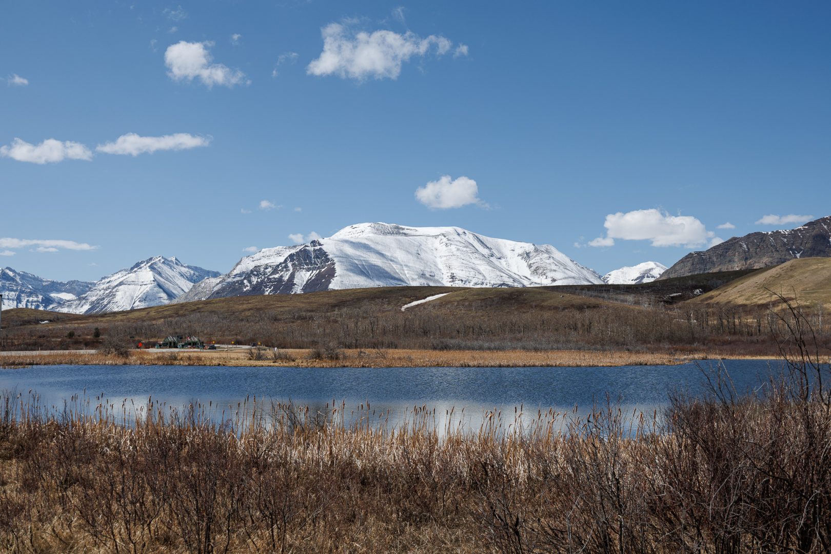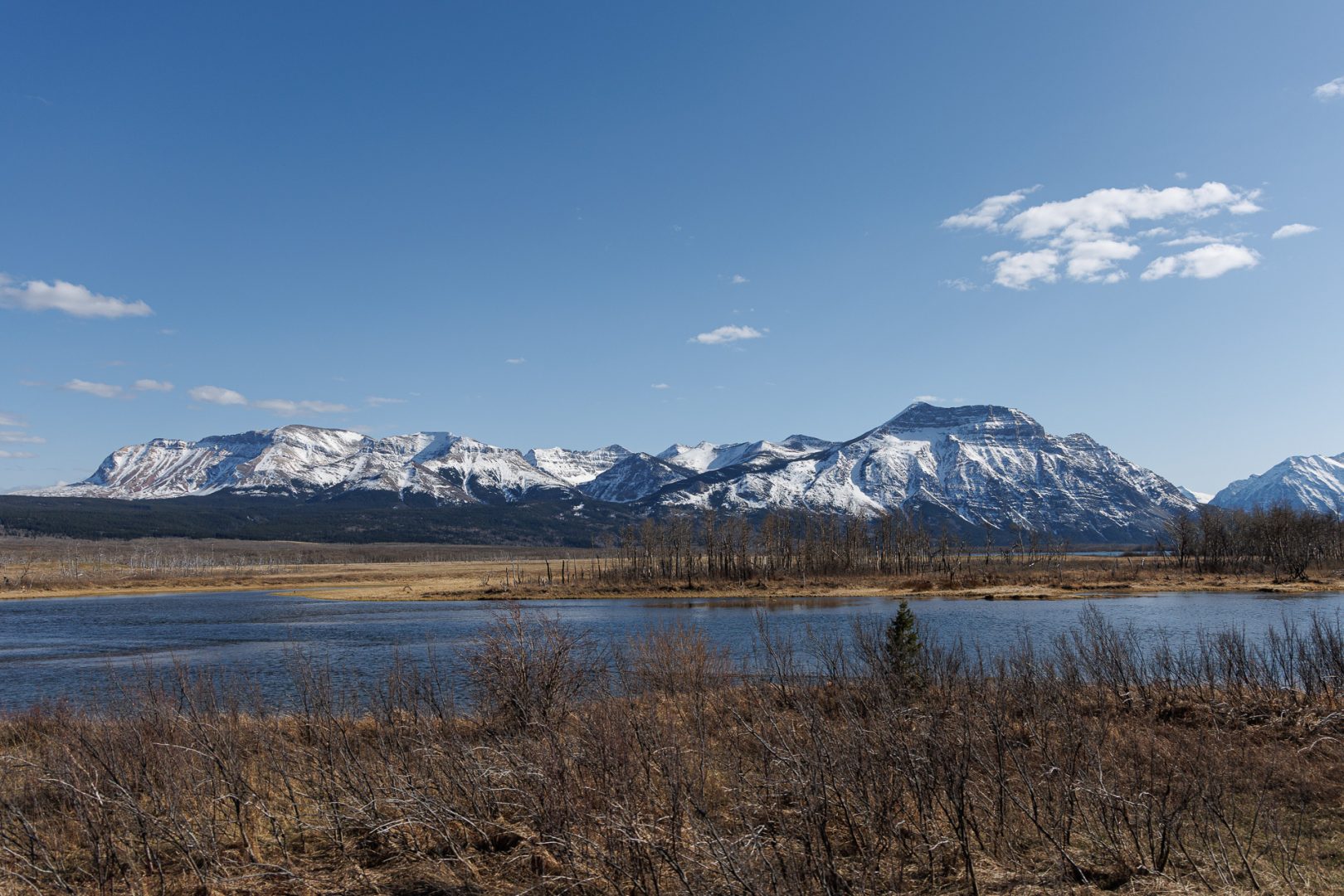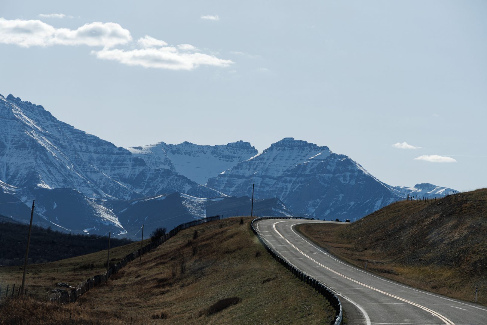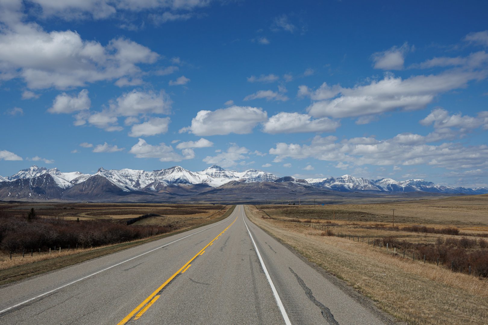 201851 km : Ce matin, nous quittons Cardston sous un beau soleil en direction du Parc national Waterton qui se trouve à 55km. On aperçoit déjà au loin la chaîne des Montagnes Rocheuses.