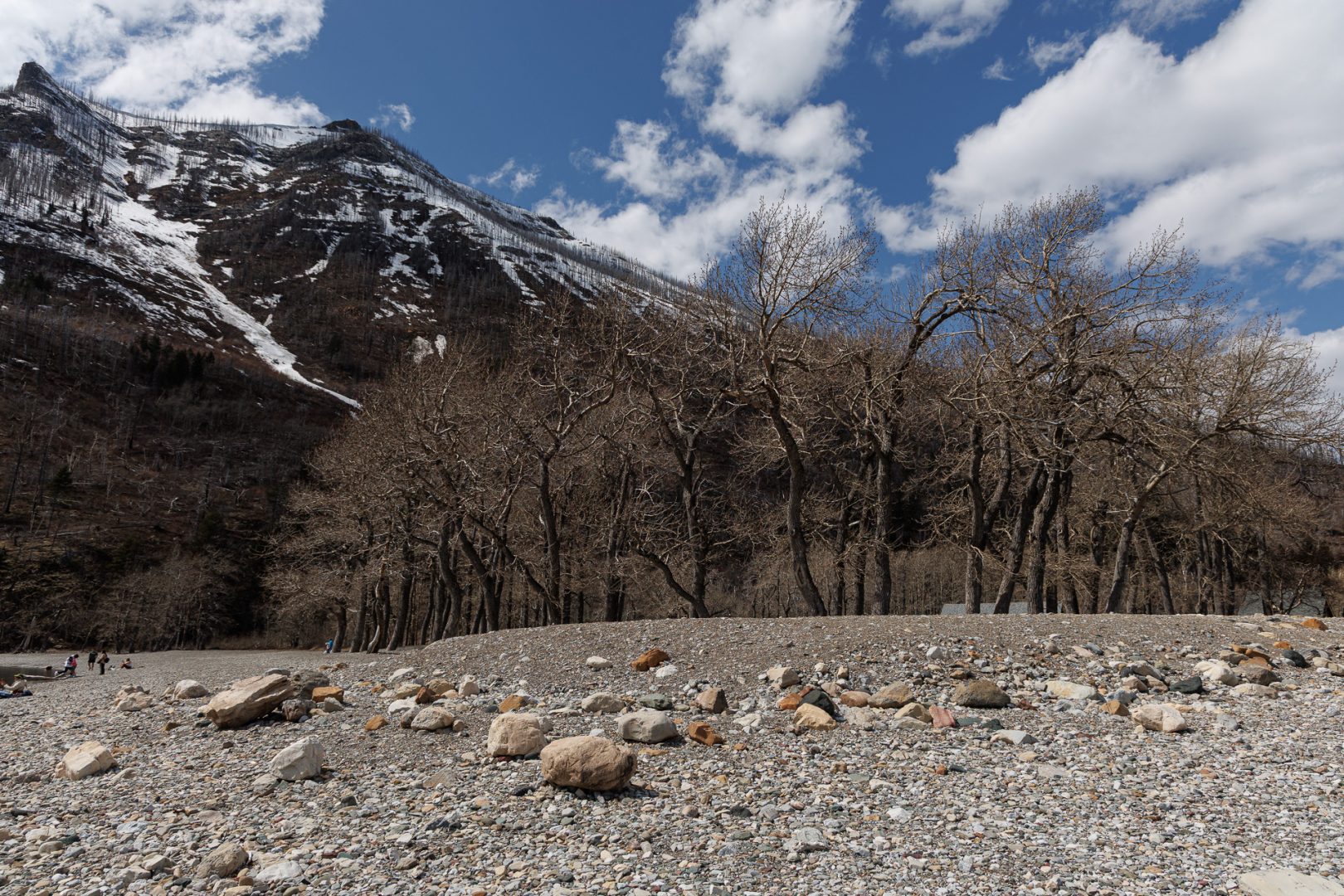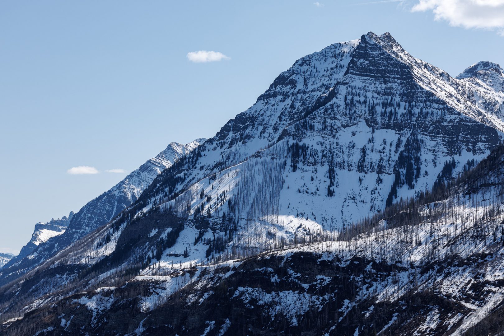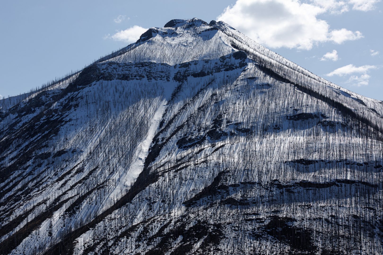 Les arbres morts ressemblent à des milliers de mikados plantés dans la neige !