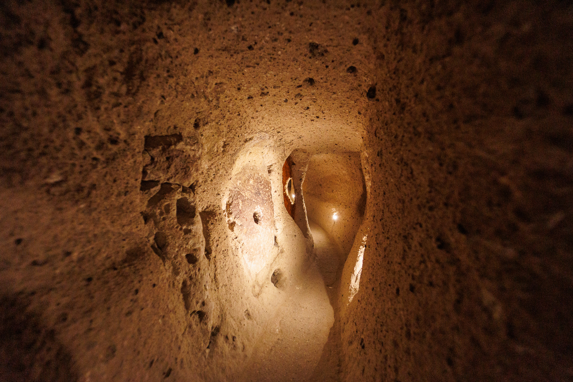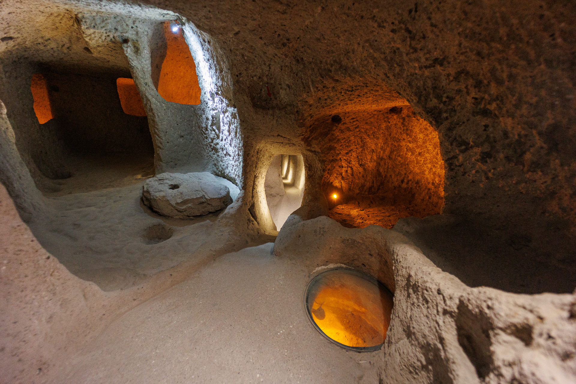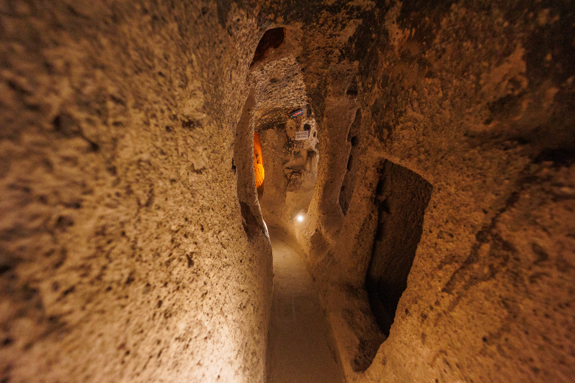 Kaymaklı est, avec Derinkuyu, la plus remarquable des cinq cités souterraines ouvertes au public, sur un total de 200 sites de ce genre en Cappadoce, dont 36 comportent au moins trois niveaux. Les premières excavations dans le tuf friable de la colline remontent peut-être à l’époque des Hittites, vers 1300 avant JC. Mais il est plus généralement admis que celles de Derinkuyu et de Kaymaklı datent de la domination phrygienne (8ème siècle avant JC). Mais cette cité, comme les autres, a été essentiellement creusée par des populations paléochrétiennes souhaitant se protéger contre des persécutions et des invasions. Huit mille chrétiens, fuyant les persécutions romaines, y auraient trouvé refuge. Plus tard, des populations s’y réfugièrent, notamment à partir du 7ème siècle face aux raids des Omeyyades et des Abbassides. La cité a grandi au fil des siècles, comptant finalement des kilomètres de galeries.