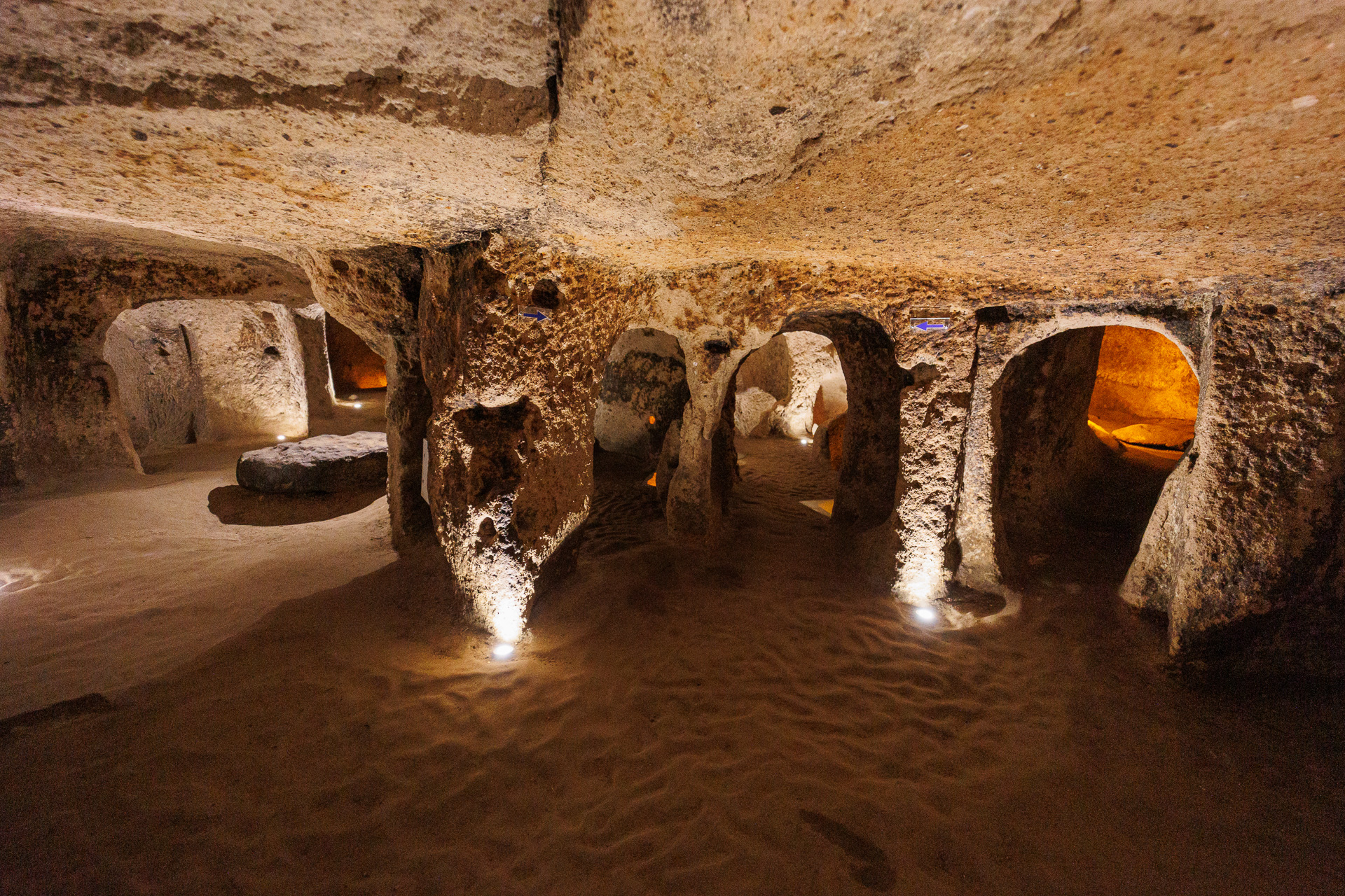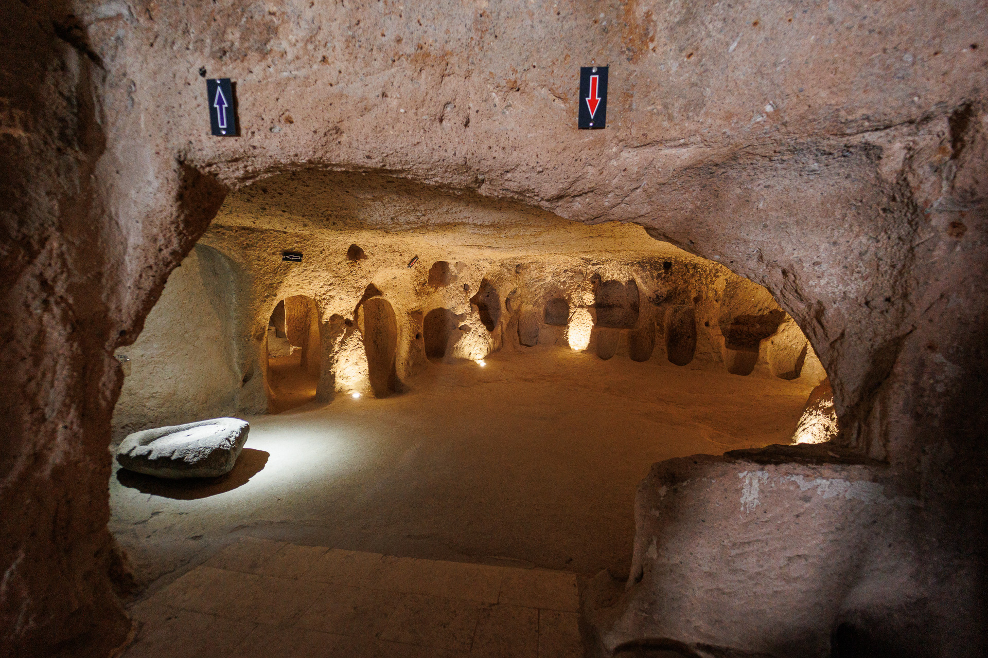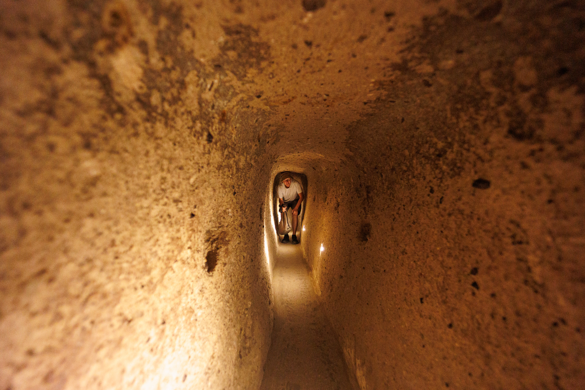 Kaymaklı est, avec Derinkuyu, la plus remarquable des cinq cités souterraines ouvertes au public, sur un total de 200 sites de ce genre en Cappadoce, dont 36 comportent au moins trois niveaux. Les premières excavations dans le tuf friable de la colline remontent peut-être à l’époque des Hittites, vers 1300 avant JC. Mais il est plus généralement admis que celles de Derinkuyu et de Kaymaklı datent de la domination phrygienne (8ème siècle avant JC). Mais cette cité, comme les autres, a été essentiellement creusée par des populations paléochrétiennes souhaitant se protéger contre des persécutions et des invasions. Huit mille chrétiens, fuyant les persécutions romaines, y auraient trouvé refuge. Plus tard, des populations s’y réfugièrent, notamment à partir du 7ème siècle face aux raids des Omeyyades et des Abbassides. La cité a grandi au fil des siècles, comptant finalement des kilomètres de galeries.
