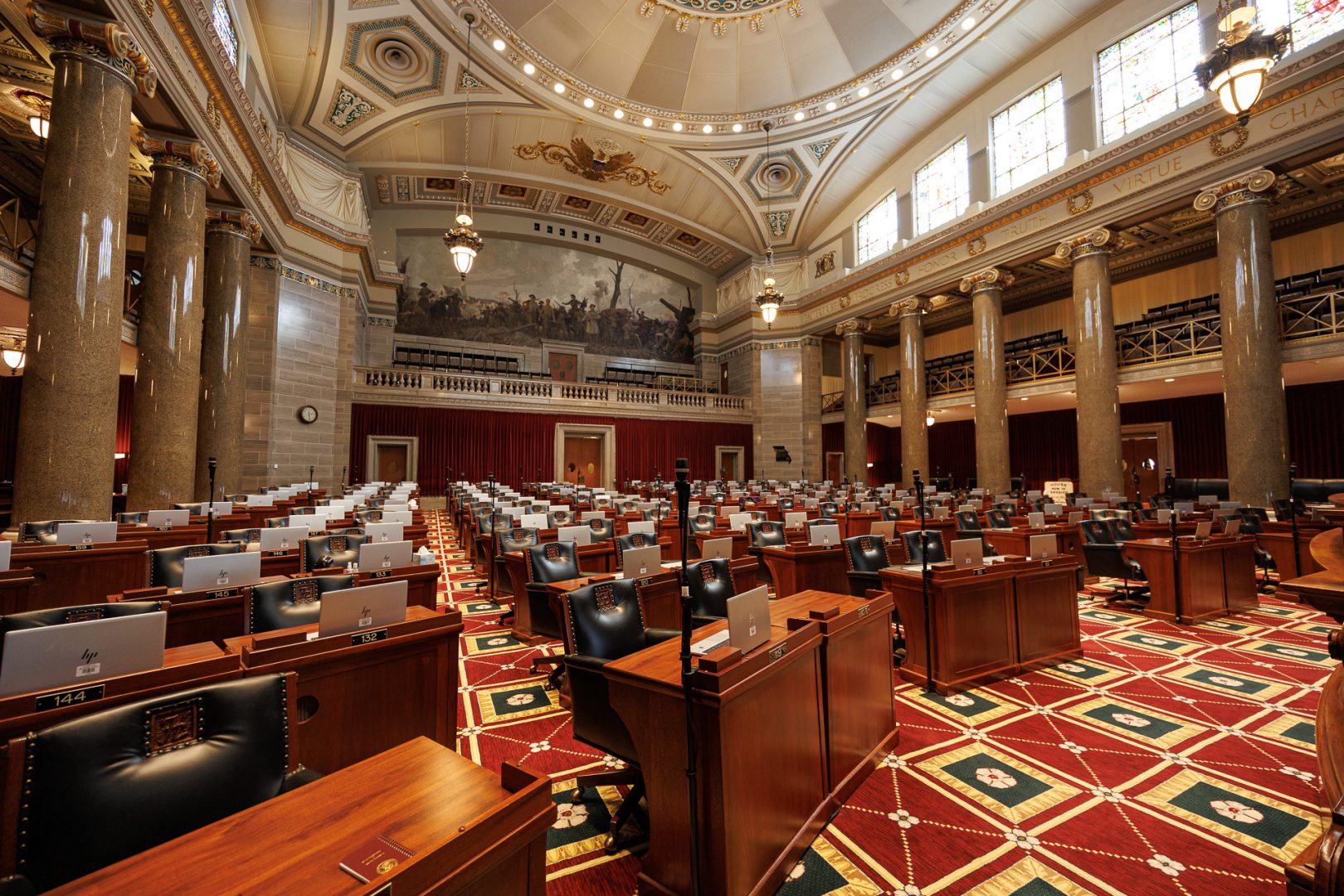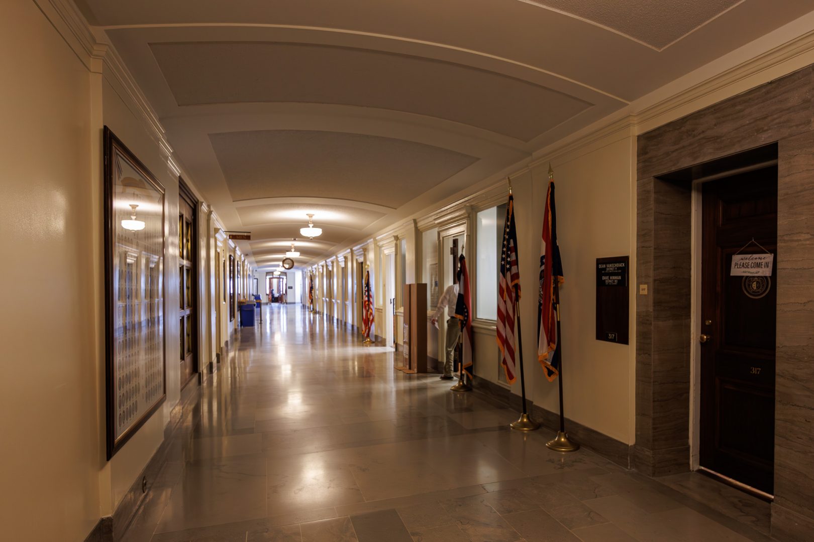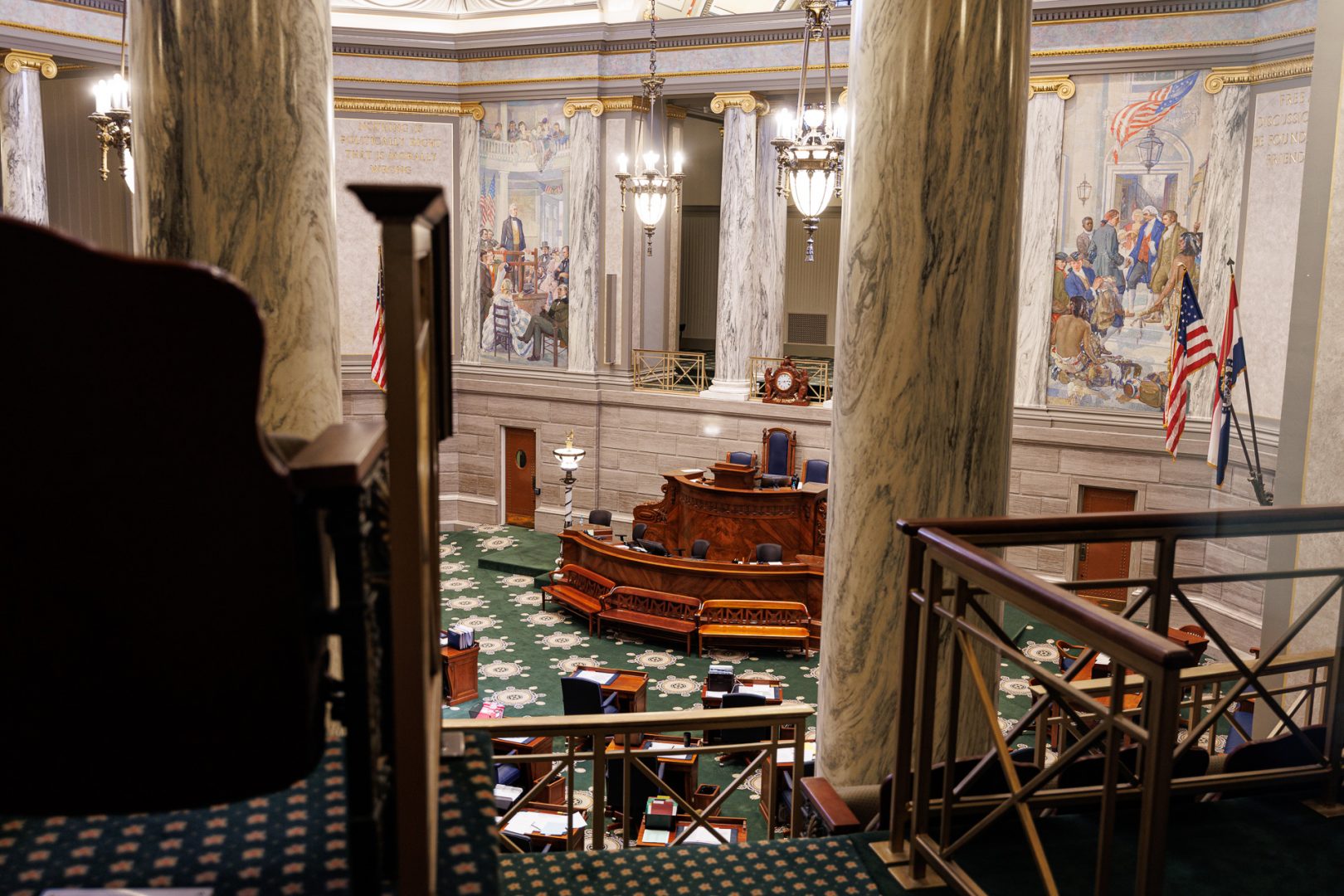 Nous poursuivons notre visite et nous voilà devant la Chambre des Représentants située au 3ème étage. La porte est fermée mais en chemin nous avons rencontré Chad Perkins, Speaker Pro Tem à la Chambre des Représentants, qui nous propose gentiment de nous y accompagner. Le speaker pro tempore est un membre clé de la chambre des représentants, qui assure la continuité du leadership et le bon fonctionnement de la chambre en l’absence du speaker (président de la chambre).