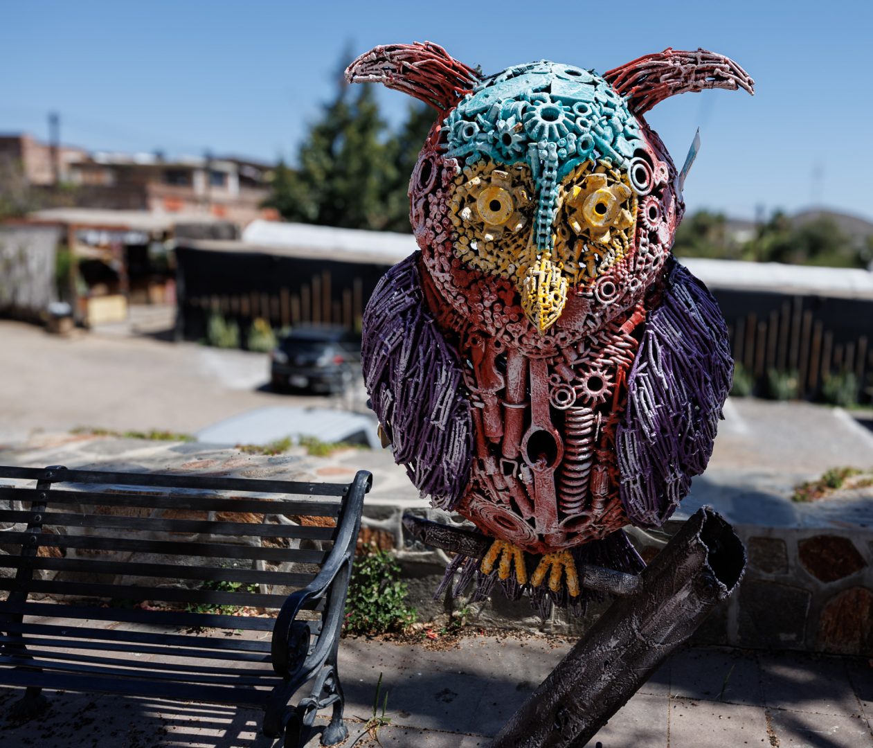Sur le parvis de la mission, il y a aussi une belle exposition de sculptures métalliques. C’est sur cette note artistique que s’achève notre visite de la ville de Todos los Santos.