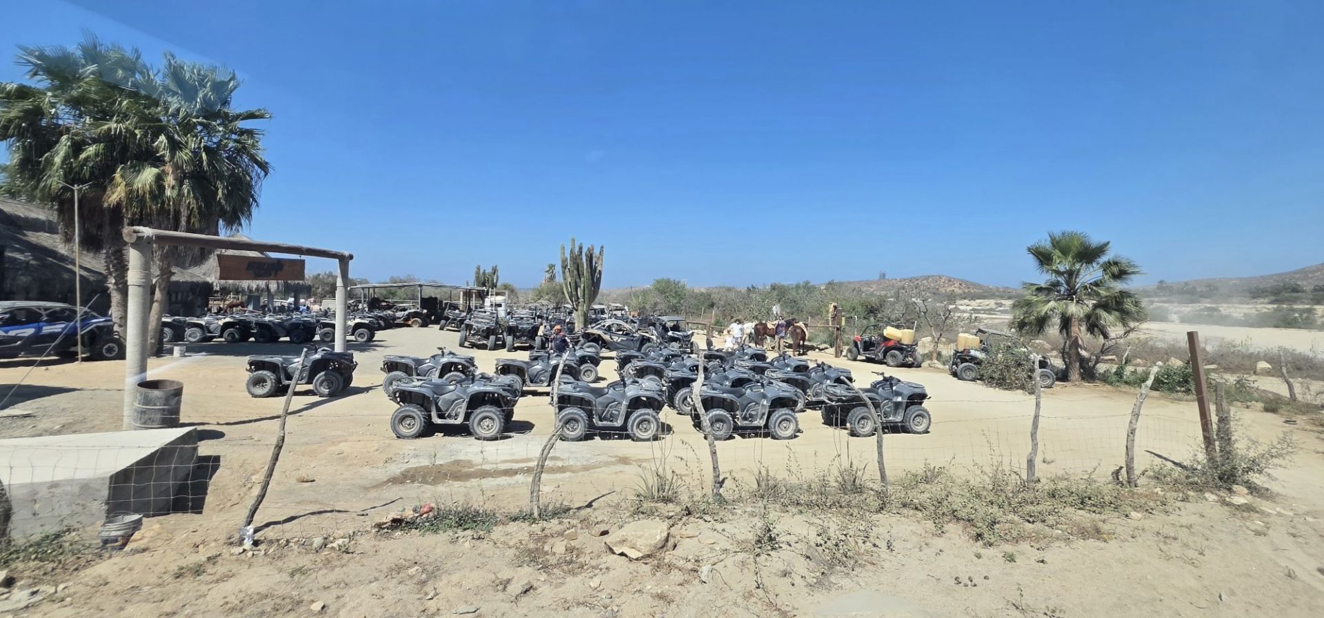 Nous avons trouvé la cause de tout ce tumulte 🙄. Juste au début de la piste, il y a un loueur de quads, buggies et autres bolides… On n’ose pas imaginer ces dizaines de quads roulant à vive allure sur la plage 🥴 !