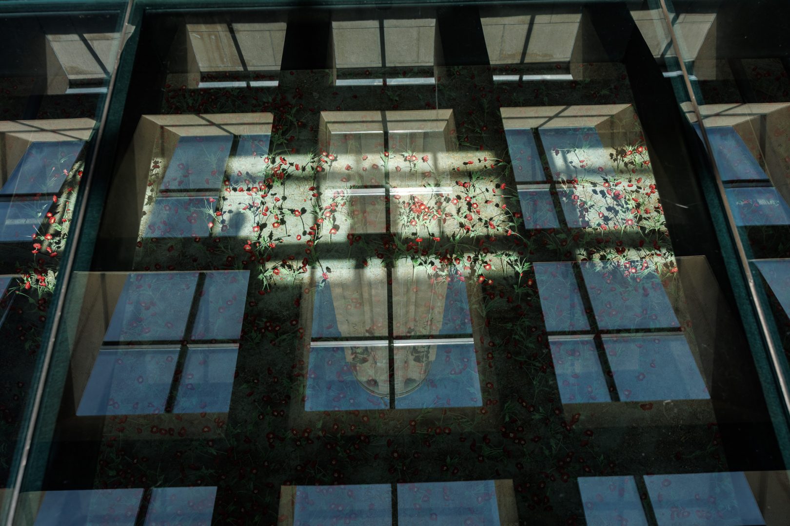 Un plancher transparent permet d’admirer un petit champ de coquelicots en souvenir des champs de bataille. Les coquelicots sont un symbole de respect et de commémoration de ceux qui sont morts pendant la Première Guerre mondiale.