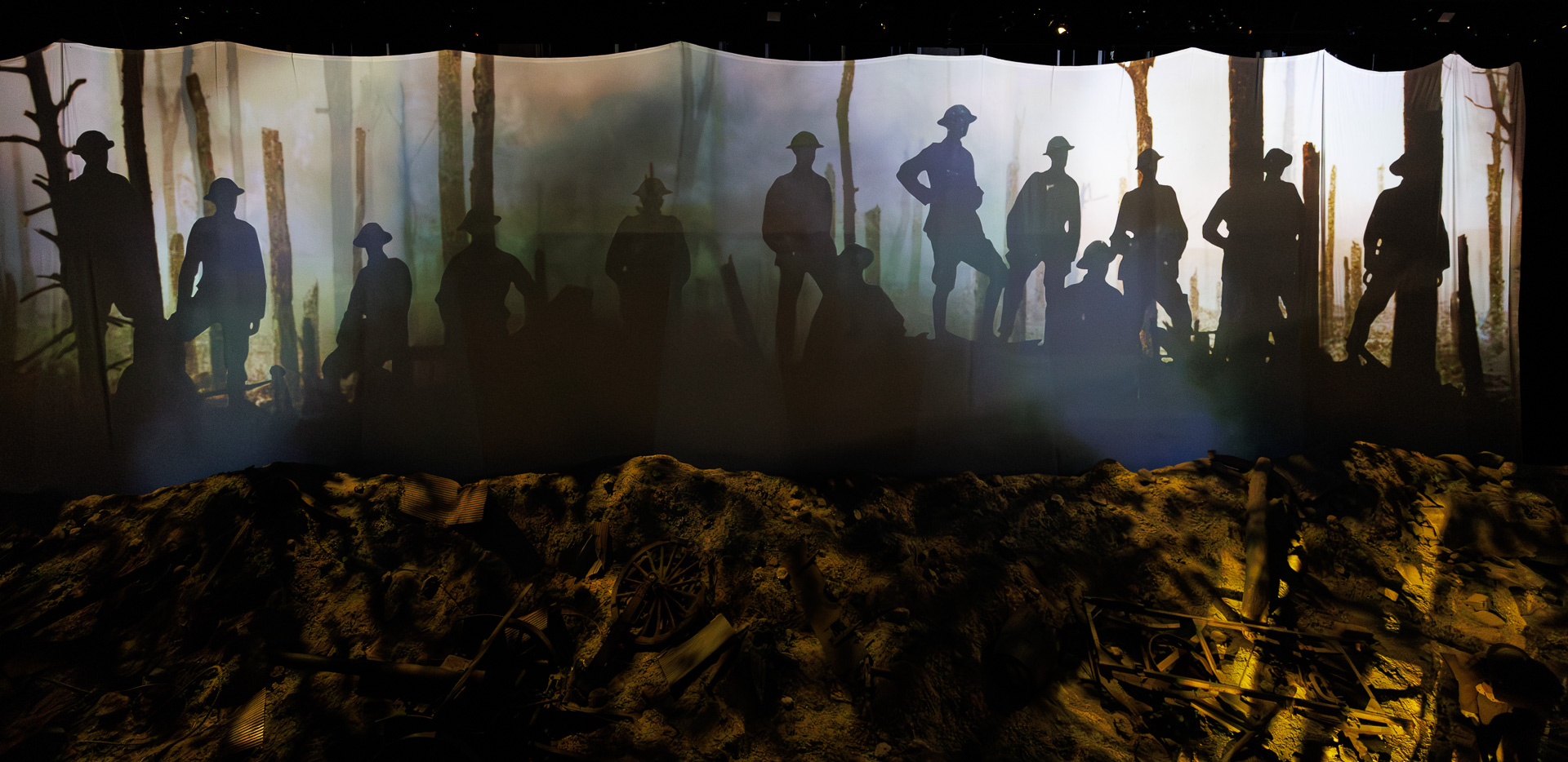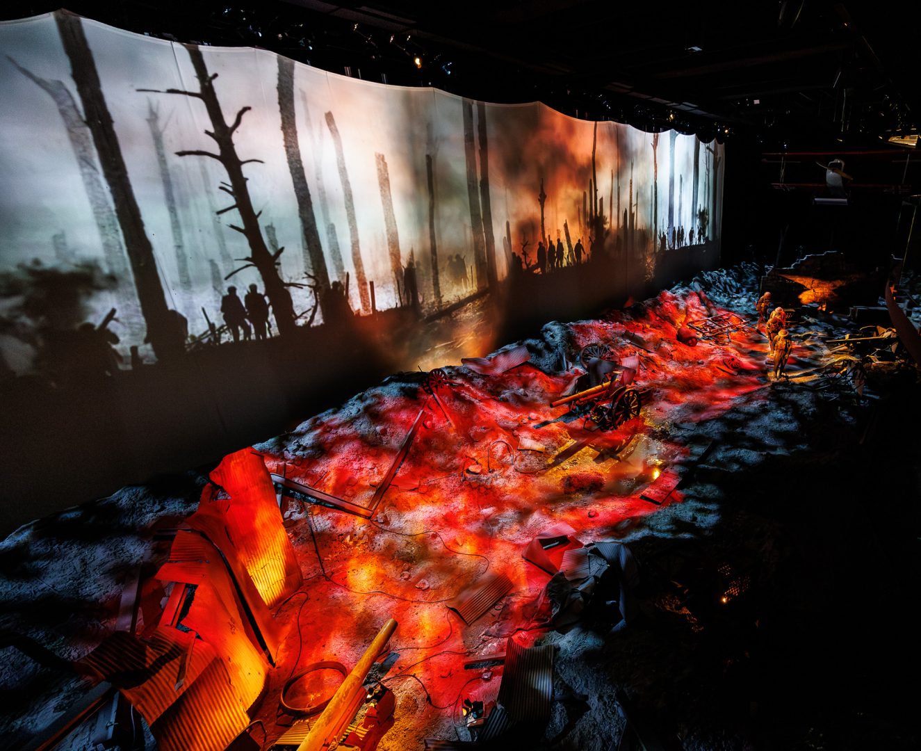 Cette scénographie présente bien l’horreur de cette guerre ! Environ 65 millions de soldats combattirent et plus de 9 millions périrent. Trente-six pays à travers le monde, dont les États-Unis qui envoyèrent 2 millions d’hommes et de femmes à l’étranger, participèrent à cette guerre.