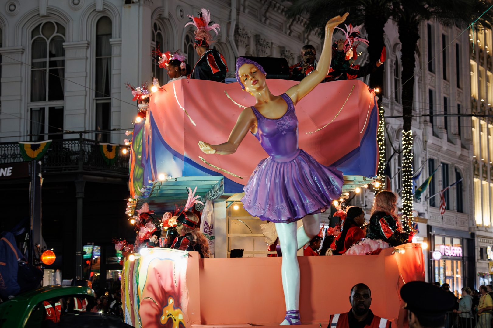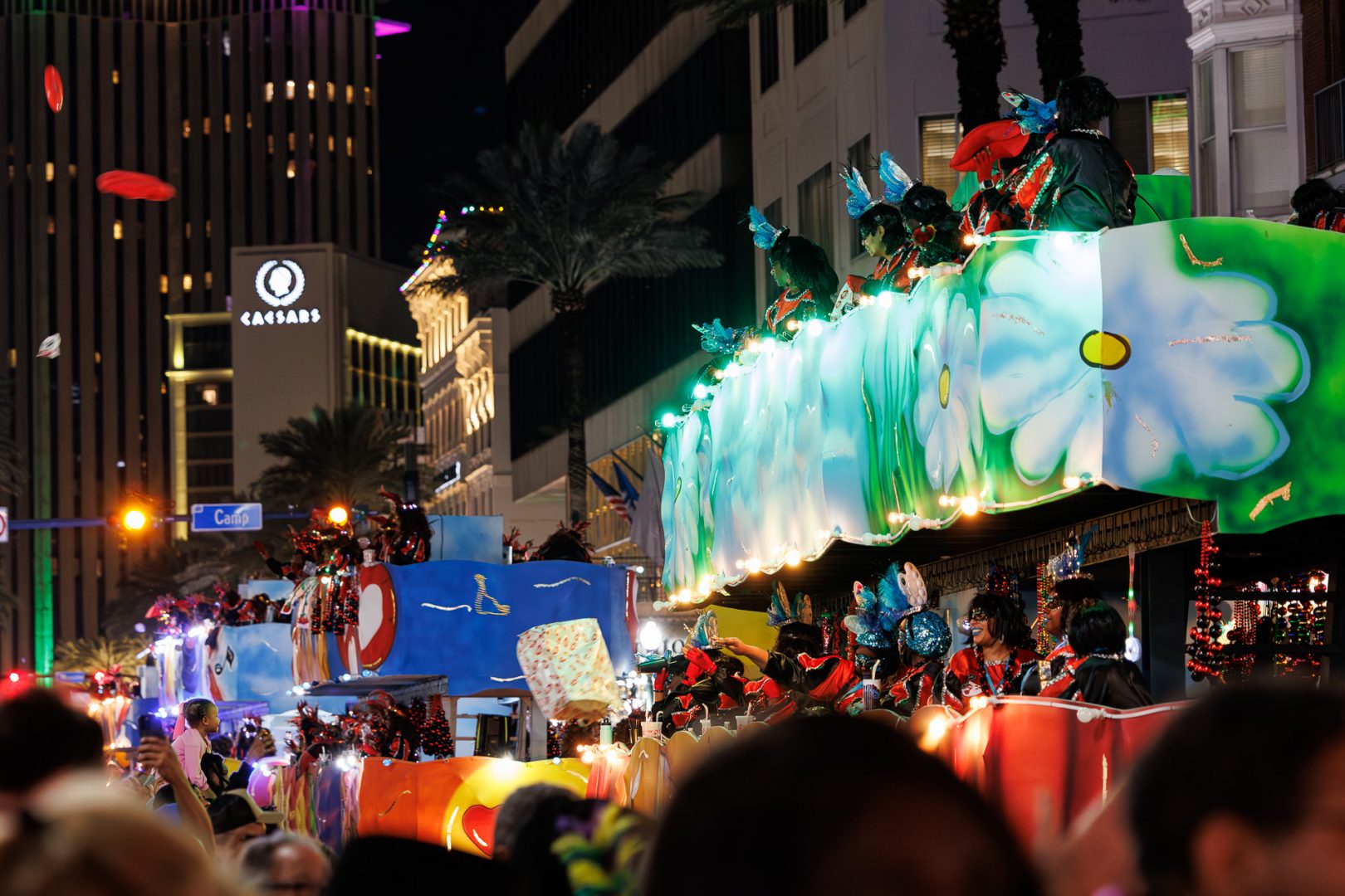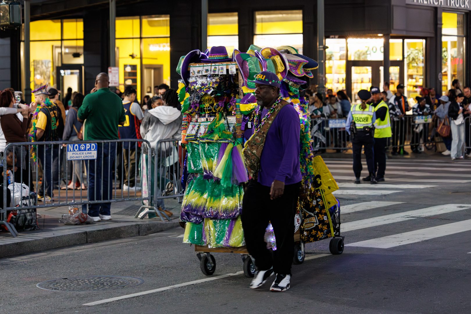 Nous avons été interloqués par cette dépense en objets de toute sorte dont un certain nombre finiront directement sur la chaussée, écrasés par le char suivant. Une partie de l’argent dépensé dans cette profusion de gadgets et mobilisation de moyens pourrait être utilisé autrement car il y a beaucoup de pauvreté à la Nouvelle-Orleans (23% de la population en 2023). Mais le tourisme est le principal moteur économique de la Nouvelle-Orléans alors… 🙄