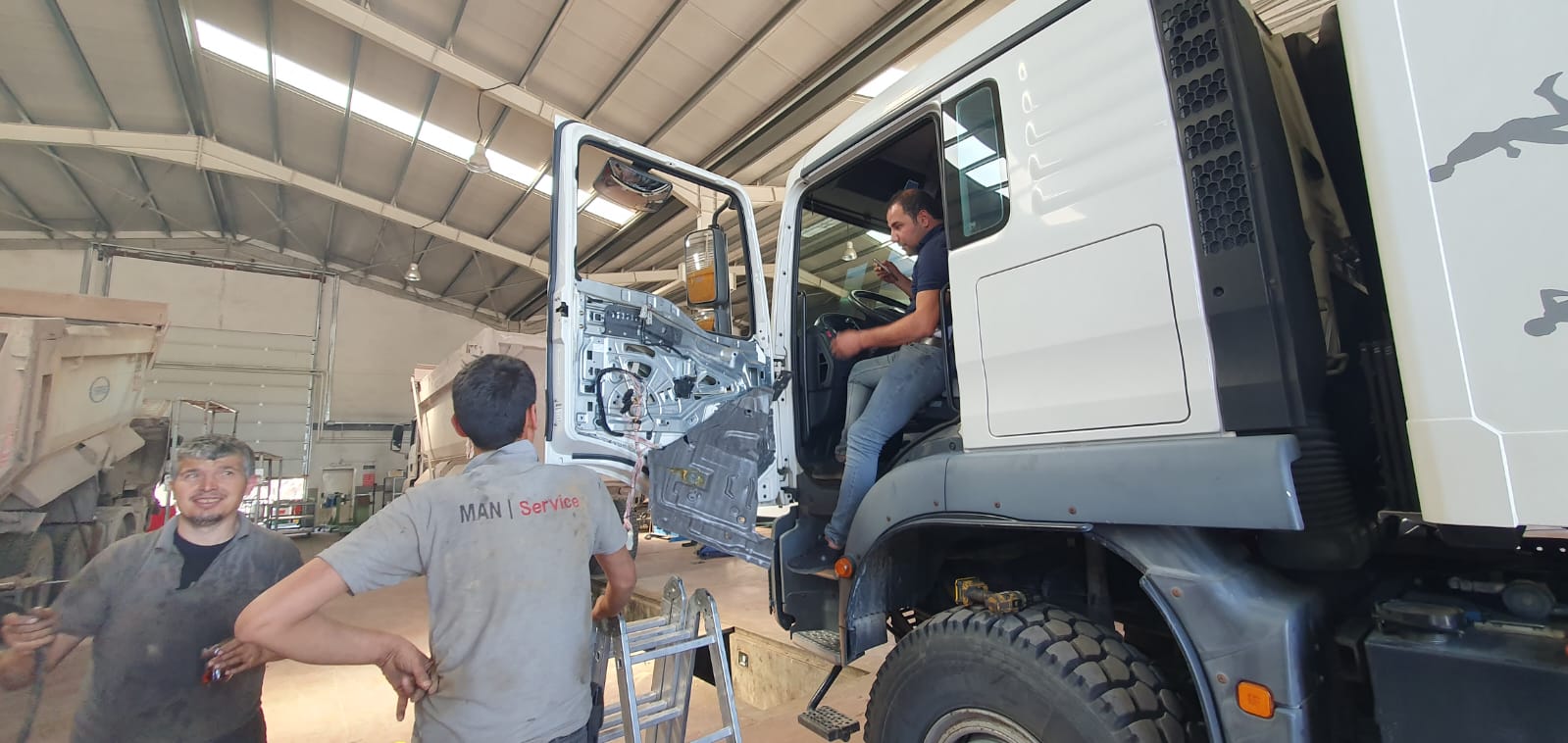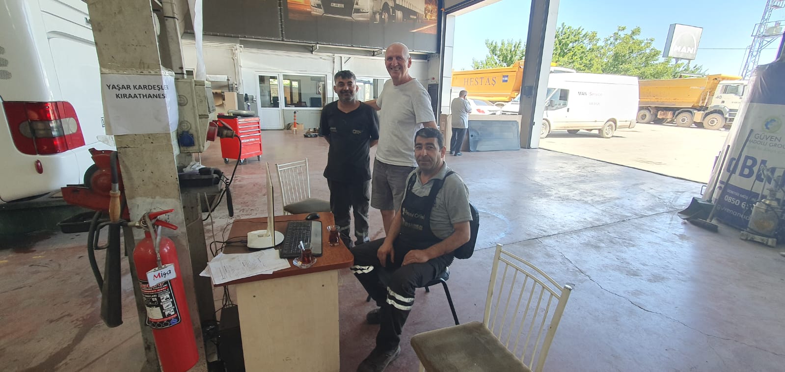 Nous reprenons la route et, comme cela fait longtemps que nous n’y avons mis les roues🤣, nous faisons une petite halte chez MAN à Kayseri pour résoudre un petit souci de contact de portière conducteur.