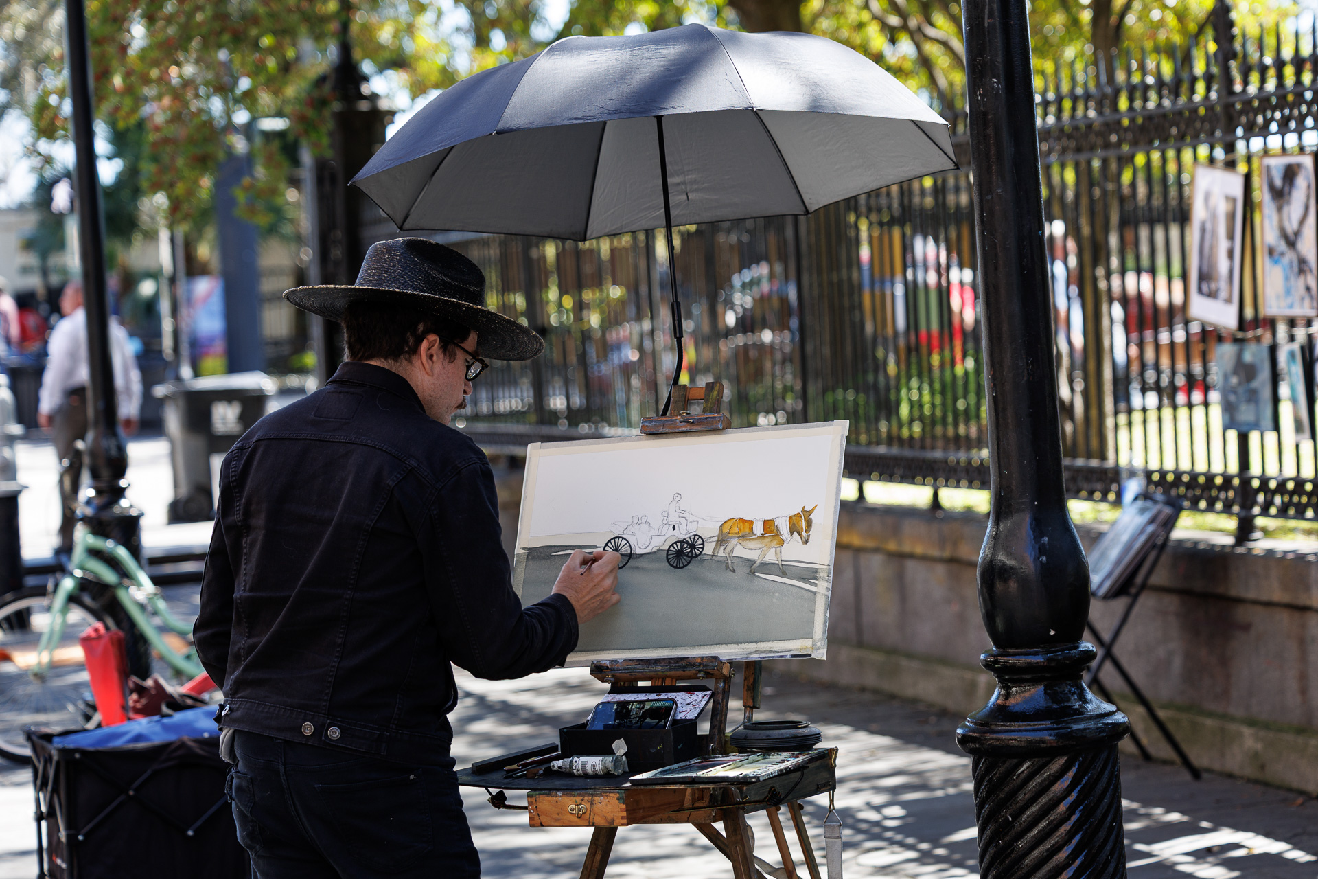 Après ces 2 visites, nous nous dirigeons vers le New Orleans Jazz Museum. Sur notre chemin, nous croisons un peintre,